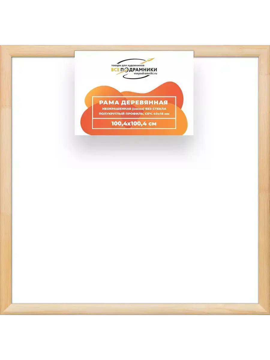 Рама изготовлена из древесины сосны 1 сорта. Подобный неокрашенный багет отлично подойдет для многих современных работ в разных стилях и жанрах. Но главная особенность данного багета в том, что его можно декорировать используя различные краски и лаки, такая рама будет в единственном экземпляре и уже являться эксклюзивным авторским творением. Рама выполнена из дерева (сосна), профиль шлифованный, неокрашенный. Указан внутренний размер окна рамы мм. (запас 2 мм с каждой стороны чтобы ваше изделие свободно поместилось). 1. Основные характеристики: - Размеры рамки: 100x100 (по размеру помещаемого изображения) - Габариты изделия: 108.4x108.4 см. - Цвет: не указан - Профиль: не указан - Сечение рамы: 40x18 мм - Ширина четверти: мм - Высота четверти: мм 2. Комплектация: - Подвесная пластина – 2 шт. - Прижимы для подрамника - Винты 3. Назначение: - Подходит для оформления: • Картин, включая картины по номерам • Алмазных мозаик и вышивок крестом • Постеров, фотографий, икон • Паспарту, зеркал • Вышивки бисером и алмазной мозаики • Медалей, орденов, спортивных наград • Старинных часов, ключей, монет или украшений - Используется как настенная или настольная фоторамка (нет подставки) 4. Преимущества: - Универсальность: квадратные и прямоугольные форматы, размеры от 10х10 до 100х100 см - Удобство: можно повесить горизонтально или вертикально - Широкий выбор: разные профили, расцветки, с опцией со стеклом или без - Идеальный подарок: для мамы, папы, бабушки, дедушки, друзей, коллег на день рождения, Новый год, 8 марта, 23 февраля, свадьбу, новоселье или любой другой праздник 5. Применение в интерьере: - Идеально для алмазной вышивки, мозаики, картин на подрамнике - Украшение дома: подходит для изображений цветов, живописи, портретов, натюрмортов, городских пейзажей, природы 6. Производство: - Страна: Россия, Санкт-Петербург - Качество: высококачественные материалы с вниманием к деталям