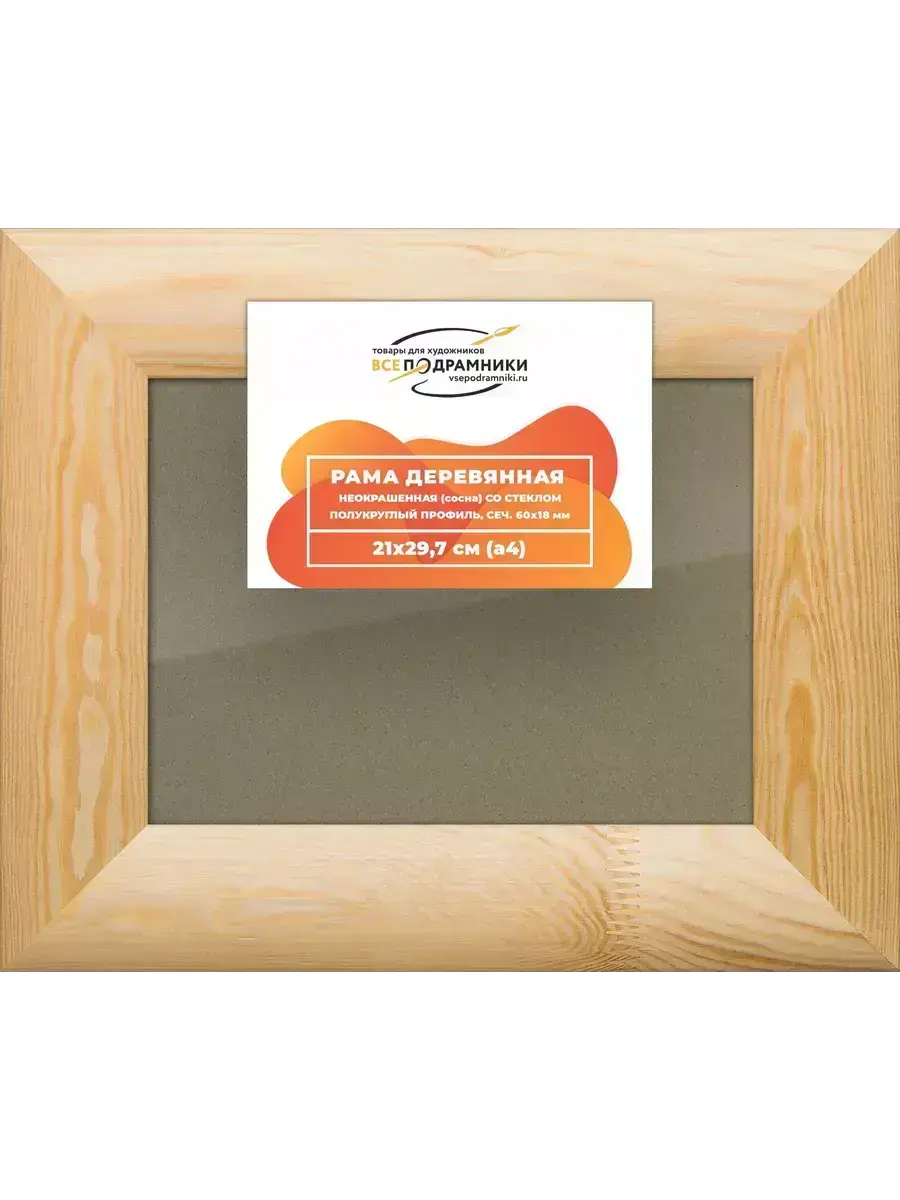 Рама изготовлена из древесины сосны 1 сорта. Подобный неокрашенный багет отлично подойдет для многих современных работ в разных стилях и жанрах. Но главная особенность данного багета в том, что его можно декорировать используя различные краски и лаки, такая рама будет в единственном экземпляре и уже являться эксклюзивным авторским творением. Рама выполнена из дерева (сосна), профиль шлифованный, неокрашенный. Указан внутренний размер окна рамы мм. (запас 2 мм с каждой стороны чтобы ваше изделие свободно поместилось). 1. Основные характеристики: - Размеры рамки: 21x29,7 (по размеру помещаемого изображения) - Габариты изделия: 33.4x42.1 см. - Цвет: не указан - Профиль: не указан - Сечение рамы: 60x18 мм - Ширина четверти: мм - Высота четверти: мм 2. Комплектация: - Стекло 2мм (обычное) - Задник - Подвесная пластина – 2 шт. - Винты - Прижимы для фиксации задника 3. Назначение: - Подходит для оформления: • Картин, включая картины по номерам • Алмазных мозаик и вышивок крестом • Постеров, фотографий, икон • Паспарту, зеркал • Вышивки бисером и алмазной мозаики • Медалей, орденов, спортивных наград • Старинных часов, ключей, монет или украшений - Используется как настенная или настольная фоторамка (нет подставки) 4. Преимущества: - Универсальность: квадратные и прямоугольные форматы, размеры от 10х10 до 100х100 см - Удобство: можно повесить горизонтально или вертикально - Широкий выбор: разные профили, расцветки, с опцией со стеклом или без - Идеальный подарок: для мамы, папы, бабушки, дедушки, друзей, коллег на день рождения, Новый год, 8 марта, 23 февраля, свадьбу, новоселье или любой другой праздник 5. Применение в интерьере: - Украшение дома: подходит для изображений цветов, живописи, портретов, натюрмортов, городских пейзажей, природы - Идеально для алмазной вышивки, мозаики, фотографий или постера 6. Производство: - Страна: Россия, Санкт-Петербург - Качество: высококачественные материалы с вниманием к деталям