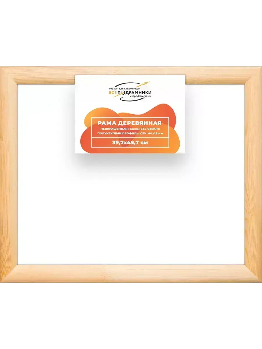 Рама изготовлена из древесины сосны 1 сорта. Подобный неокрашенный багет отлично подойдет для многих современных работ в разных стилях и жанрах. Но главная особенность данного багета в том, что его можно декорировать используя различные краски и лаки, такая рама будет в единственном экземпляре и уже являться эксклюзивным авторским творением. Рама выполнена из дерева (сосна), профиль шлифованный, неокрашенный. Указан внутренний размер окна рамы мм. (запас 2 мм с каждой стороны чтобы ваше изделие свободно поместилось). 1. Основные характеристики: - Размеры рамки: 39,7x49,7 (по размеру помещаемого изображения) - Габариты изделия: 48.1x58.1 см. - Цвет: не указан - Профиль: не указан - Сечение рамы: 40x18 мм - Ширина четверти: мм - Высота четверти: мм 2. Комплектация: - Подвесная пластина – 2 шт. - Прижимы для подрамника - Винты 3. Назначение: - Подходит для оформления: • Картин, включая картины по номерам • Алмазных мозаик и вышивок крестом • Постеров, фотографий, икон • Паспарту, зеркал • Вышивки бисером и алмазной мозаики • Медалей, орденов, спортивных наград • Старинных часов, ключей, монет или украшений - Используется как настенная или настольная фоторамка (нет подставки) 4. Преимущества: - Универсальность: квадратные и прямоугольные форматы, размеры от 10х10 до 100х100 см - Удобство: можно повесить горизонтально или вертикально - Широкий выбор: разные профили, расцветки, с опцией со стеклом или без - Идеальный подарок: для мамы, папы, бабушки, дедушки, друзей, коллег на день рождения, Новый год, 8 марта, 23 февраля, свадьбу, новоселье или любой другой праздник 5. Применение в интерьере: - Идеально для алмазной вышивки, мозаики, картин на подрамнике - Украшение дома: подходит для изображений цветов, живописи, портретов, натюрмортов, городских пейзажей, природы 6. Производство: - Страна: Россия, Санкт-Петербург - Качество: высококачественные материалы с вниманием к деталям