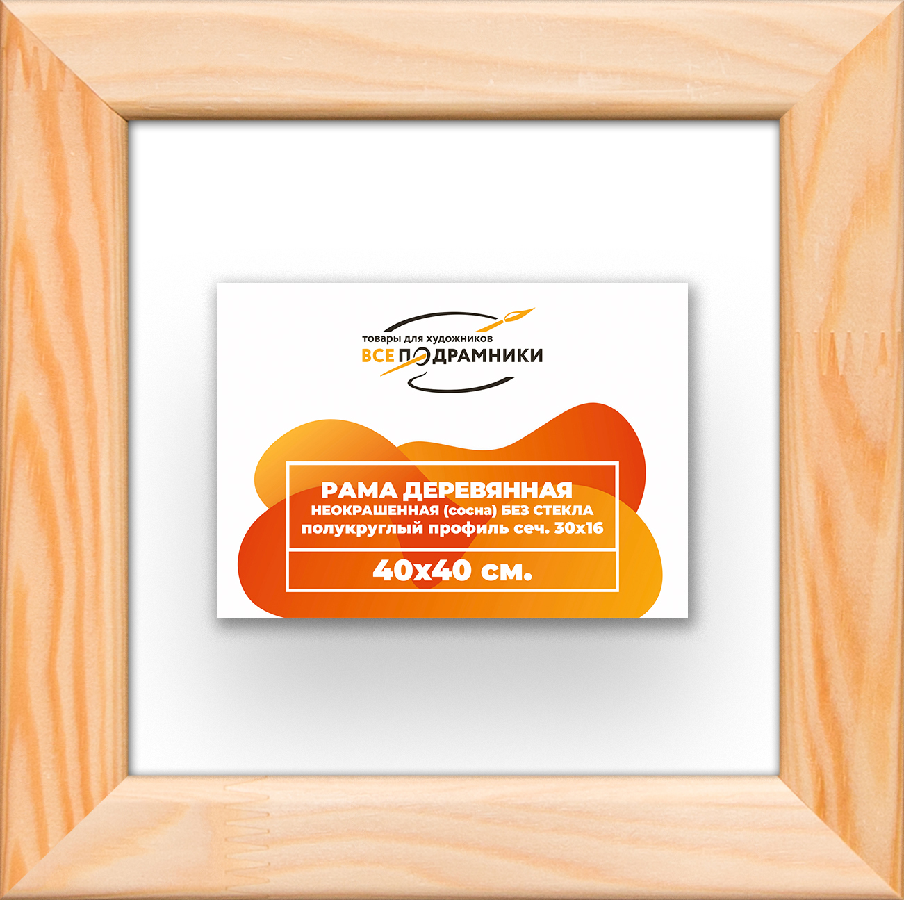 Рама изготовлена из древесины сосны 1 сорта. Подобный неокрашенный багет отлично подойдет для многих современных работ в разных стилях и жанрах. Но главная особенность данного багета в том, что его можно декорировать используя различные краски и лаки, такая рама будет в единственном экземпляре и уже являться эксклюзивным авторским творением. Рама выполнена из дерева (сосна), профиль шлифованный, неокрашенный. Указан внутренний размер окна рамы мм. (запас 2 мм с каждой стороны чтобы ваше изделие свободно поместилось). 1. Основные характеристики: - Размеры рамки: 40x40 (по размеру помещаемого изображения) - Габариты изделия: 46.4x46.4 см. - Цвет: не указан - Профиль: не указан - Сечение рамы: 30x16 мм - Ширина четверти: мм - Высота четверти: мм 2. Комплектация: - Подвесная пластина – 2 шт. - Прижимы для подрамника - Винты 3. Назначение: - Подходит для оформления: • Картин, включая картины по номерам • Алмазных мозаик и вышивок крестом • Постеров, фотографий, икон • Паспарту, зеркал • Вышивки бисером и алмазной мозаики • Медалей, орденов, спортивных наград • Старинных часов, ключей, монет или украшений - Используется как настенная или настольная фоторамка (нет подставки) 4. Преимущества: - Универсальность: квадратные и прямоугольные форматы, размеры от 10х10 до 100х100 см - Удобство: можно повесить горизонтально или вертикально - Широкий выбор: разные профили, расцветки, с опцией со стеклом или без - Идеальный подарок: для мамы, папы, бабушки, дедушки, друзей, коллег на день рождения, Новый год, 8 марта, 23 февраля, свадьбу, новоселье или любой другой праздник 5. Применение в интерьере: - Идеально для алмазной вышивки, мозаики, картин на подрамнике - Украшение дома: подходит для изображений цветов, живописи, портретов, натюрмортов, городских пейзажей, природы 6. Производство: - Страна: Россия, Санкт-Петербург - Качество: высококачественные материалы с вниманием к деталям