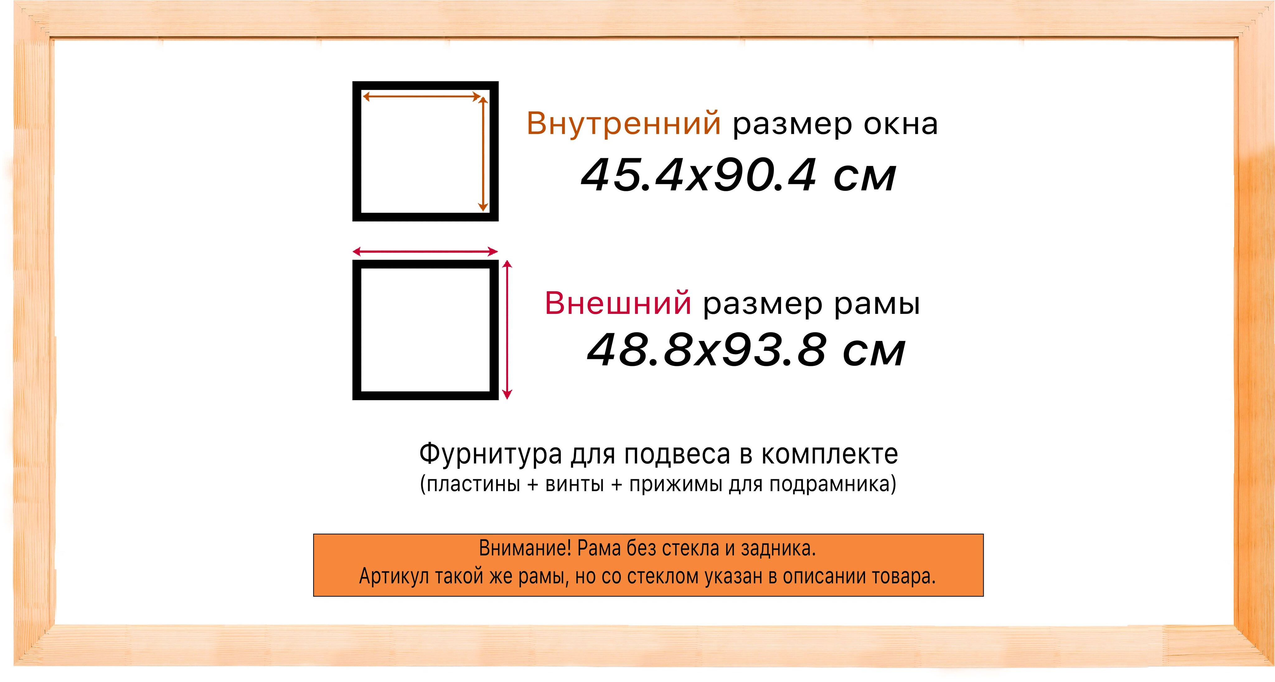 Рама изготовлена из древесины сосны 1 сорта. Подобный неокрашенный багет отлично подойдет для многих современных работ в разных стилях и жанрах. Но главная особенность данного багета в том, что его можно декорировать используя различные краски и лаки, такая рама будет в единственном экземпляре и уже являться эксклюзивным авторским творением. Рама выполнена из дерева (сосна), профиль шлифованный, неокрашенный. Указан внутренний размер окна рамы мм. (запас 2 мм с каждой стороны чтобы ваше изделие свободно поместилось). 1. Основные характеристики: - Размеры рамки: 45x90 (по размеру помещаемого изображения) - Габариты изделия: 49.2x94.2 см. - Цвет: не указан - Профиль: не указан - Сечение рамы: 19x30 мм - Ширина четверти: мм - Высота четверти: мм 2. Комплектация: - Подвесная пластина – 2 шт. - Прижимы для подрамника - Винты 3. Назначение: - Подходит для оформления: • Картин, включая картины по номерам • Алмазных мозаик и вышивок крестом • Постеров, фотографий, икон • Паспарту, зеркал • Вышивки бисером и алмазной мозаики • Медалей, орденов, спортивных наград • Старинных часов, ключей, монет или украшений - Используется как настенная или настольная фоторамка (нет подставки) 4. Преимущества: - Универсальность: квадратные и прямоугольные форматы, размеры от 10х10 до 100х100 см - Удобство: можно повесить горизонтально или вертикально - Широкий выбор: разные профили, расцветки, с опцией со стеклом или без - Идеальный подарок: для мамы, папы, бабушки, дедушки, друзей, коллег на день рождения, Новый год, 8 марта, 23 февраля, свадьбу, новоселье или любой другой праздник 5. Применение в интерьере: - Идеально для алмазной вышивки, мозаики, картин на подрамнике - Украшение дома: подходит для изображений цветов, живописи, портретов, натюрмортов, городских пейзажей, природы 6. Производство: - Страна: Россия, Санкт-Петербург - Качество: высококачественные материалы с вниманием к деталям