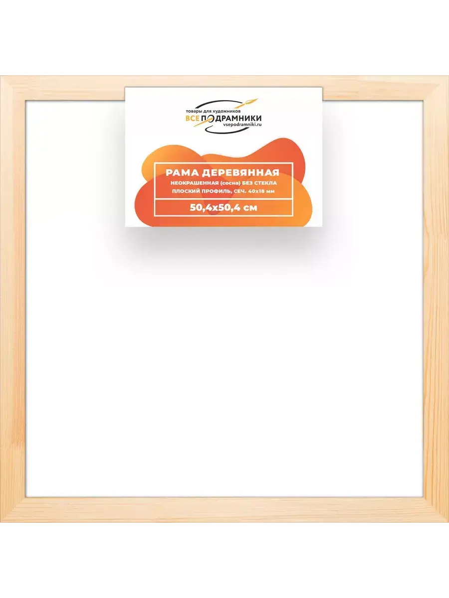 Рама изготовлена из древесины сосны 1 сорта. Подобный неокрашенный багет отлично подойдет для многих современных работ в разных стилях и жанрах. Но главная особенность данного багета в том, что его можно декорировать используя различные краски и лаки, такая рама будет в единственном экземпляре и уже являться эксклюзивным авторским творением. Рама выполнена из дерева (сосна), профиль шлифованный, неокрашенный. Указан внутренний размер окна рамы мм. (запас 2 мм с каждой стороны чтобы ваше изделие свободно поместилось). 1. Основные характеристики: - Размеры рамки: 50x50 (по размеру помещаемого изображения) - Габариты изделия: 58.4x58.4 см. - Цвет: не указан - Профиль: не указан - Сечение рамы: 40x18 мм - Ширина четверти: мм - Высота четверти: мм 2. Комплектация: - Подвесная пластина – 2 шт. - Прижимы для подрамника - Винты 3. Назначение: - Подходит для оформления: • Картин, включая картины по номерам • Алмазных мозаик и вышивок крестом • Постеров, фотографий, икон • Паспарту, зеркал • Вышивки бисером и алмазной мозаики • Медалей, орденов, спортивных наград • Старинных часов, ключей, монет или украшений - Используется как настенная или настольная фоторамка (нет подставки) 4. Преимущества: - Универсальность: квадратные и прямоугольные форматы, размеры от 10х10 до 100х100 см - Удобство: можно повесить горизонтально или вертикально - Широкий выбор: разные профили, расцветки, с опцией со стеклом или без - Идеальный подарок: для мамы, папы, бабушки, дедушки, друзей, коллег на день рождения, Новый год, 8 марта, 23 февраля, свадьбу, новоселье или любой другой праздник 5. Применение в интерьере: - Идеально для алмазной вышивки, мозаики, картин на подрамнике - Украшение дома: подходит для изображений цветов, живописи, портретов, натюрмортов, городских пейзажей, природы 6. Производство: - Страна: Россия, Санкт-Петербург - Качество: высококачественные материалы с вниманием к деталям