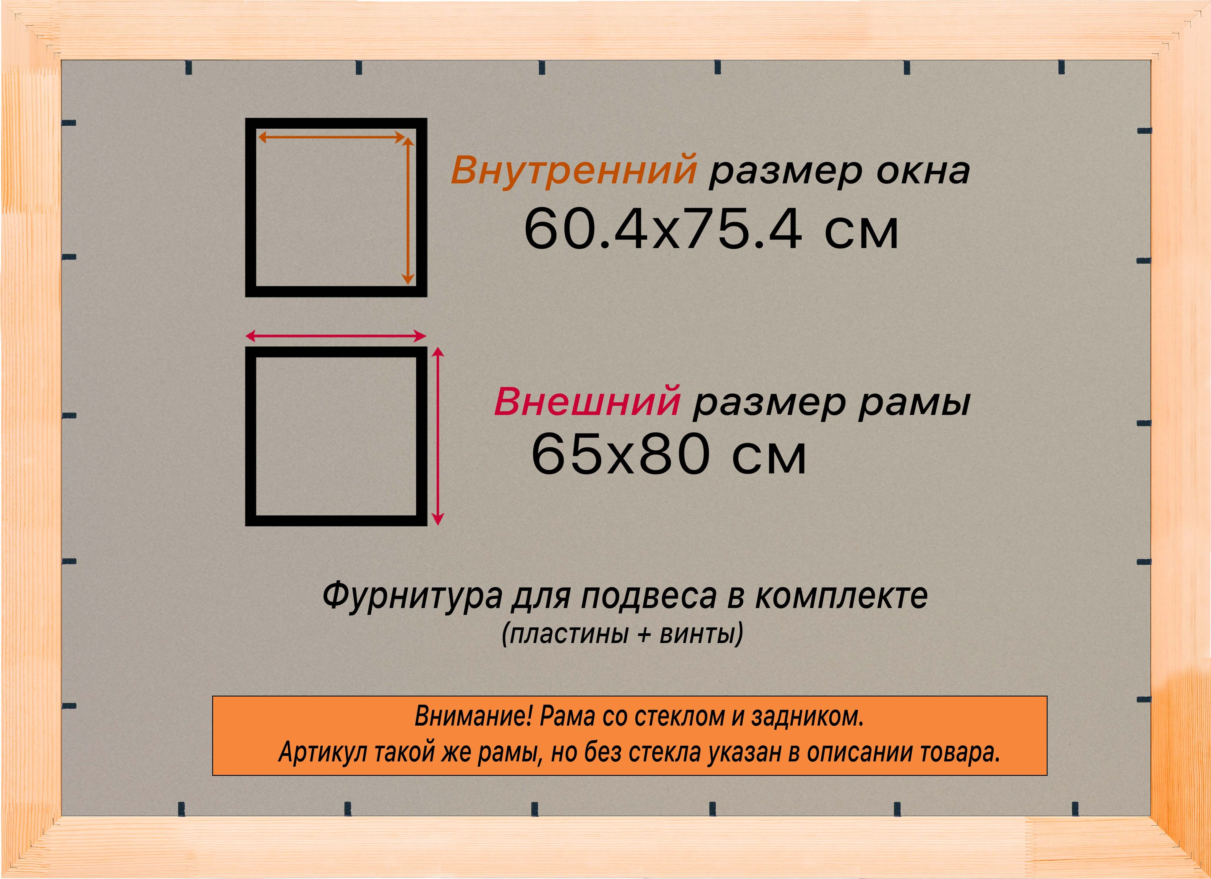 Рама изготовлена из древесины сосны 1 сорта. Подобный неокрашенный багет отлично подойдет для многих современных работ в разных стилях и жанрах. Но главная особенность данного багета в том, что его можно декорировать используя различные краски и лаки, такая рама будет в единственном экземпляре и уже являться эксклюзивным авторским творением. Рама выполнена из дерева (сосна), профиль шлифованный, неокрашенный. Указан внутренний размер окна рамы мм. (запас 2 мм с каждой стороны чтобы ваше изделие свободно поместилось). 1. Основные характеристики: - Размеры рамки: 60x75 (по размеру помещаемого изображения) - Габариты изделия: 66.4x81.4 см. - Цвет: не указан - Профиль: не указан - Сечение рамы: 30x16 мм - Ширина четверти: мм - Высота четверти: мм 2. Комплектация: - Стекло 2мм (обычное) - Задник - Подвесная пластина – 2 шт. - Винты - Прижимы для фиксации задника 3. Назначение: - Подходит для оформления: • Картин, включая картины по номерам • Алмазных мозаик и вышивок крестом • Постеров, фотографий, икон • Паспарту, зеркал • Вышивки бисером и алмазной мозаики • Медалей, орденов, спортивных наград • Старинных часов, ключей, монет или украшений - Используется как настенная или настольная фоторамка (нет подставки) 4. Преимущества: - Универсальность: квадратные и прямоугольные форматы, размеры от 10х10 до 100х100 см - Удобство: можно повесить горизонтально или вертикально - Широкий выбор: разные профили, расцветки, с опцией со стеклом или без - Идеальный подарок: для мамы, папы, бабушки, дедушки, друзей, коллег на день рождения, Новый год, 8 марта, 23 февраля, свадьбу, новоселье или любой другой праздник 5. Применение в интерьере: - Украшение дома: подходит для изображений цветов, живописи, портретов, натюрмортов, городских пейзажей, природы - Идеально для алмазной вышивки, мозаики, фотографий или постера 6. Производство: - Страна: Россия, Санкт-Петербург - Качество: высококачественные материалы с вниманием к деталям