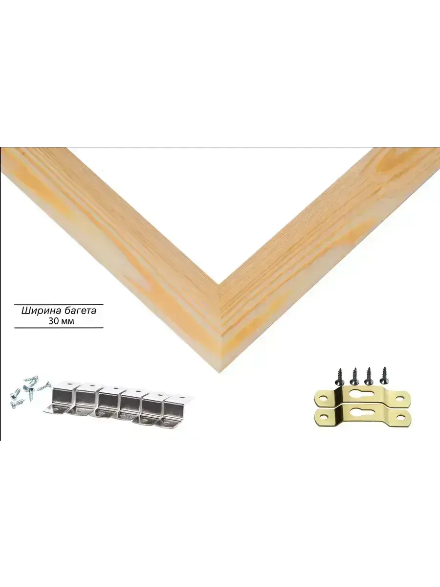 Рама изготовлена из древесины сосны 1 сорта. Подобный неокрашенный багет отлично подойдет для многих современных работ в разных стилях и жанрах. Но главная особенность данного багета в том, что его можно декорировать используя различные краски и лаки, такая рама будет в единственном экземпляре и уже являться эксклюзивным авторским творением. Рама выполнена из дерева (сосна), профиль шлифованный, неокрашенный. Указан внутренний размер окна рамы мм. (запас 2 мм с каждой стороны чтобы ваше изделие свободно поместилось). 1. Основные характеристики: - Размеры рамки: 60x95 (по размеру помещаемого изображения) - Габариты изделия: 66.4x101.4 см. - Цвет: не указан - Профиль: не указан - Сечение рамы: 30x15 мм - Ширина четверти: мм - Высота четверти: мм 2. Комплектация: - Подвесная пластина – 2 шт. - Прижимы для подрамника - Винты 3. Назначение: - Подходит для оформления: • Картин, включая картины по номерам • Алмазных мозаик и вышивок крестом • Постеров, фотографий, икон • Паспарту, зеркал • Вышивки бисером и алмазной мозаики • Медалей, орденов, спортивных наград • Старинных часов, ключей, монет или украшений - Используется как настенная или настольная фоторамка (нет подставки) 4. Преимущества: - Универсальность: квадратные и прямоугольные форматы, размеры от 10х10 до 100х100 см - Удобство: можно повесить горизонтально или вертикально - Широкий выбор: разные профили, расцветки, с опцией со стеклом или без - Идеальный подарок: для мамы, папы, бабушки, дедушки, друзей, коллег на день рождения, Новый год, 8 марта, 23 февраля, свадьбу, новоселье или любой другой праздник 5. Применение в интерьере: - Идеально для алмазной вышивки, мозаики, картин на подрамнике - Украшение дома: подходит для изображений цветов, живописи, портретов, натюрмортов, городских пейзажей, природы 6. Производство: - Страна: Россия, Санкт-Петербург - Качество: высококачественные материалы с вниманием к деталям