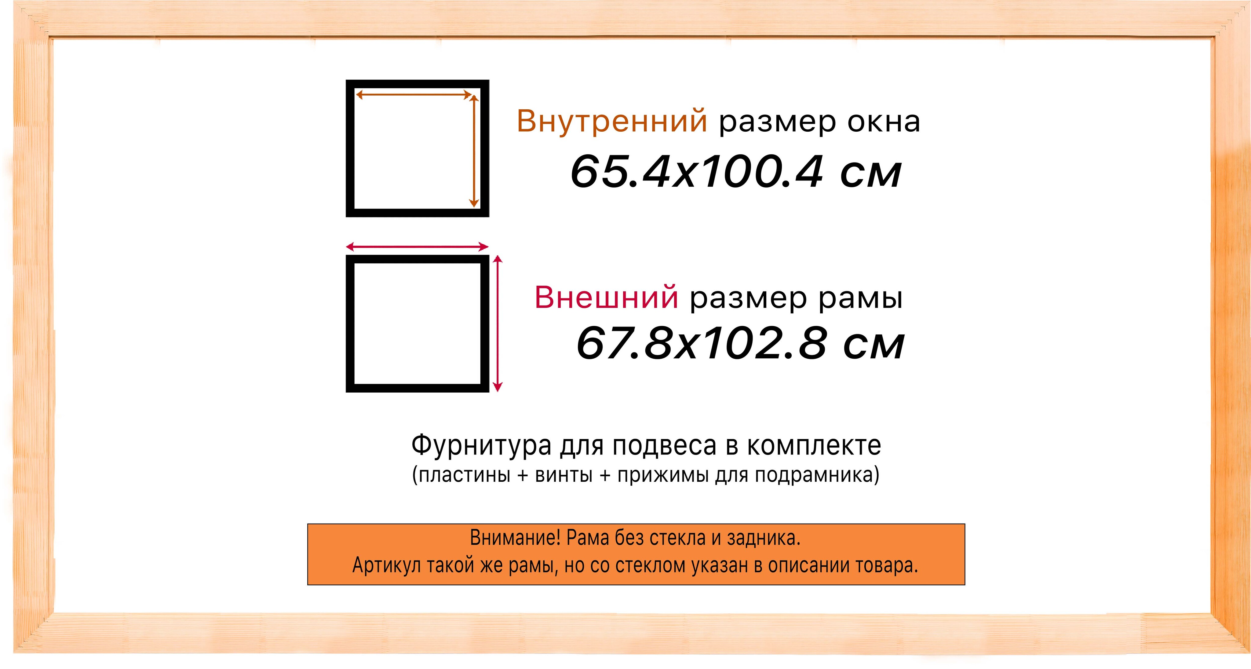 Рама изготовлена из древесины сосны 1 сорта. Подобный неокрашенный багет отлично подойдет для многих современных работ в разных стилях и жанрах. Но главная особенность данного багета в том, что его можно декорировать используя различные краски и лаки, такая рама будет в единственном экземпляре и уже являться эксклюзивным авторским творением. Рама выполнена из дерева (сосна), профиль шлифованный, неокрашенный. Указан внутренний размер окна рамы мм. (запас 2 мм с каждой стороны чтобы ваше изделие свободно поместилось). 1. Основные характеристики: - Размеры рамки: 65x100 (по размеру помещаемого изображения) - Габариты изделия: 70.2x105.2 см. - Цвет: не указан - Профиль: не указан - Сечение рамы: 24x15 мм - Ширина четверти: мм - Высота четверти: мм 2. Комплектация: - Подвесная пластина – 2 шт. - Прижимы для подрамника - Винты 3. Назначение: - Подходит для оформления: • Картин, включая картины по номерам • Алмазных мозаик и вышивок крестом • Постеров, фотографий, икон • Паспарту, зеркал • Вышивки бисером и алмазной мозаики • Медалей, орденов, спортивных наград • Старинных часов, ключей, монет или украшений - Используется как настенная или настольная фоторамка (нет подставки) 4. Преимущества: - Универсальность: квадратные и прямоугольные форматы, размеры от 10х10 до 100х100 см - Удобство: можно повесить горизонтально или вертикально - Широкий выбор: разные профили, расцветки, с опцией со стеклом или без - Идеальный подарок: для мамы, папы, бабушки, дедушки, друзей, коллег на день рождения, Новый год, 8 марта, 23 февраля, свадьбу, новоселье или любой другой праздник 5. Применение в интерьере: - Идеально для алмазной вышивки, мозаики, картин на подрамнике - Украшение дома: подходит для изображений цветов, живописи, портретов, натюрмортов, городских пейзажей, природы 6. Производство: - Страна: Россия, Санкт-Петербург - Качество: высококачественные материалы с вниманием к деталям