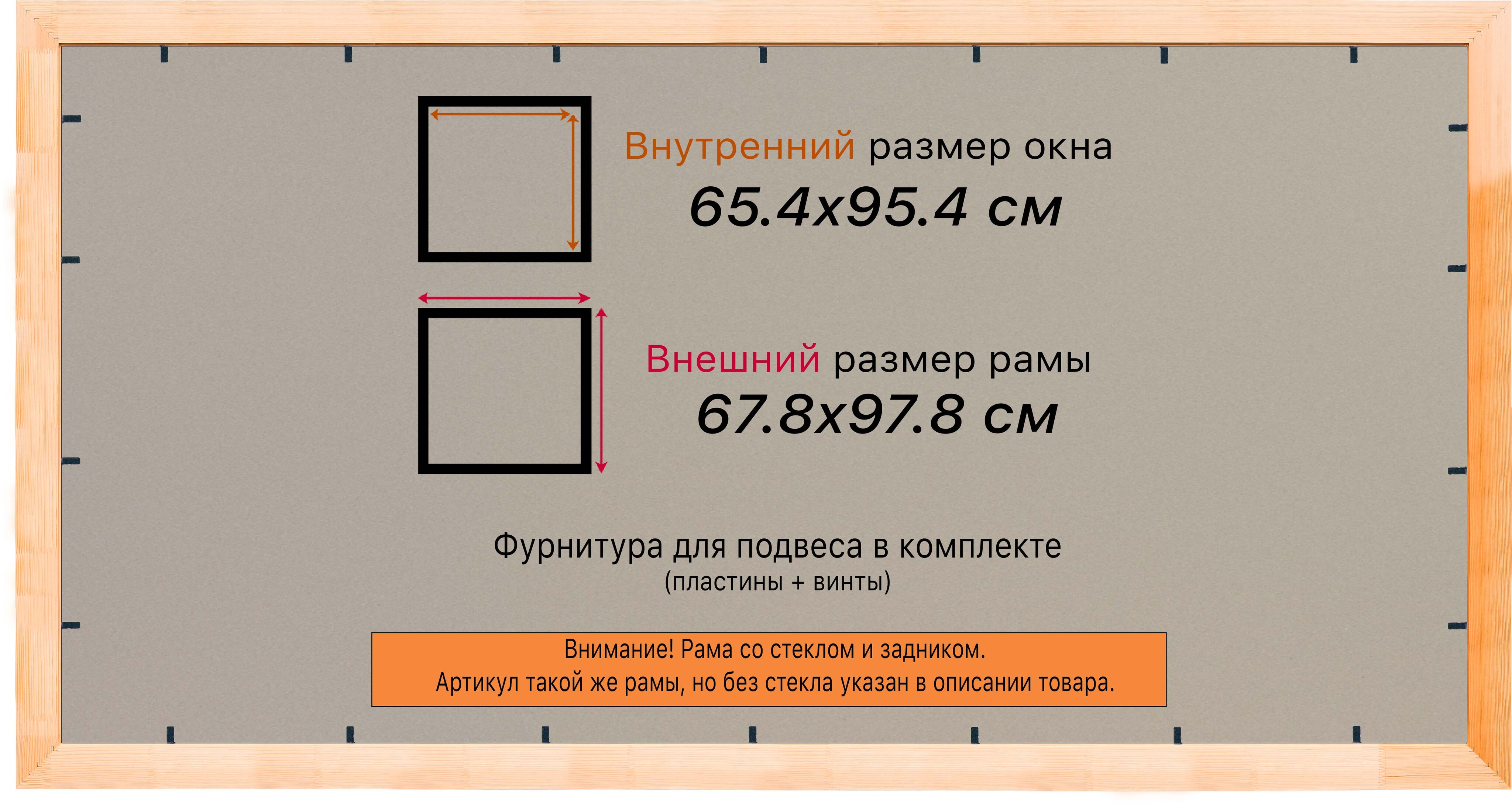 Рама изготовлена из древесины сосны 1 сорта. Подобный неокрашенный багет отлично подойдет для многих современных работ в разных стилях и жанрах. Но главная особенность данного багета в том, что его можно декорировать используя различные краски и лаки, такая рама будет в единственном экземпляре и уже являться эксклюзивным авторским творением. Рама выполнена из дерева (сосна), профиль шлифованный, неокрашенный. Указан внутренний размер окна рамы мм. (запас 2 мм с каждой стороны чтобы ваше изделие свободно поместилось). 1. Основные характеристики: - Размеры рамки: 65x95 (по размеру помещаемого изображения) - Габариты изделия: 70.2x100.2 см. - Цвет: не указан - Профиль: не указан - Сечение рамы: 24x15 мм - Ширина четверти: мм - Высота четверти: мм 2. Комплектация: - Стекло 2мм (обычное) - Задник - Подвесная пластина – 2 шт. - Винты - Прижимы для фиксации задника 3. Назначение: - Подходит для оформления: • Картин, включая картины по номерам • Алмазных мозаик и вышивок крестом • Постеров, фотографий, икон • Паспарту, зеркал • Вышивки бисером и алмазной мозаики • Медалей, орденов, спортивных наград • Старинных часов, ключей, монет или украшений - Используется как настенная или настольная фоторамка (нет подставки) 4. Преимущества: - Универсальность: квадратные и прямоугольные форматы, размеры от 10х10 до 100х100 см - Удобство: можно повесить горизонтально или вертикально - Широкий выбор: разные профили, расцветки, с опцией со стеклом или без - Идеальный подарок: для мамы, папы, бабушки, дедушки, друзей, коллег на день рождения, Новый год, 8 марта, 23 февраля, свадьбу, новоселье или любой другой праздник 5. Применение в интерьере: - Украшение дома: подходит для изображений цветов, живописи, портретов, натюрмортов, городских пейзажей, природы - Идеально для алмазной вышивки, мозаики, фотографий или постера 6. Производство: - Страна: Россия, Санкт-Петербург - Качество: высококачественные материалы с вниманием к деталям