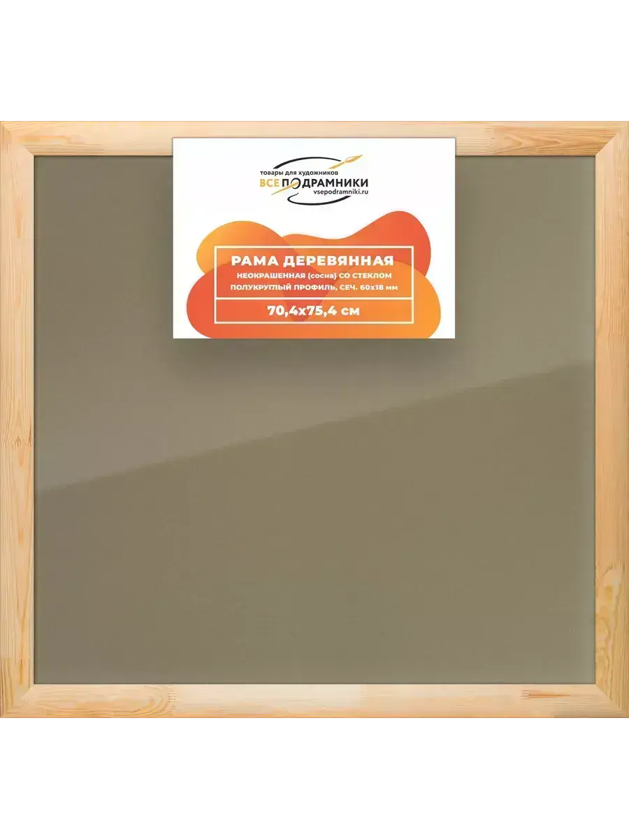 Рама изготовлена из древесины сосны 1 сорта. Подобный неокрашенный багет отлично подойдет для многих современных работ в разных стилях и жанрах. Но главная особенность данного багета в том, что его можно декорировать используя различные краски и лаки, такая рама будет в единственном экземпляре и уже являться эксклюзивным авторским творением. Рама выполнена из дерева (сосна), профиль шлифованный, неокрашенный. Указан внутренний размер окна рамы мм. (запас 2 мм с каждой стороны чтобы ваше изделие свободно поместилось). 1. Основные характеристики: - Размеры рамки: 70x75 (по размеру помещаемого изображения) - Габариты изделия: 82.4x87.4 см. - Цвет: не указан - Профиль: не указан - Сечение рамы: 60x18 мм - Ширина четверти: мм - Высота четверти: мм 2. Комплектация: - Стекло 2мм (обычное) - Задник - Подвесная пластина – 2 шт. - Винты - Прижимы для фиксации задника 3. Назначение: - Подходит для оформления: • Картин, включая картины по номерам • Алмазных мозаик и вышивок крестом • Постеров, фотографий, икон • Паспарту, зеркал • Вышивки бисером и алмазной мозаики • Медалей, орденов, спортивных наград • Старинных часов, ключей, монет или украшений - Используется как настенная или настольная фоторамка (нет подставки) 4. Преимущества: - Универсальность: квадратные и прямоугольные форматы, размеры от 10х10 до 100х100 см - Удобство: можно повесить горизонтально или вертикально - Широкий выбор: разные профили, расцветки, с опцией со стеклом или без - Идеальный подарок: для мамы, папы, бабушки, дедушки, друзей, коллег на день рождения, Новый год, 8 марта, 23 февраля, свадьбу, новоселье или любой другой праздник 5. Применение в интерьере: - Украшение дома: подходит для изображений цветов, живописи, портретов, натюрмортов, городских пейзажей, природы - Идеально для алмазной вышивки, мозаики, фотографий или постера 6. Производство: - Страна: Россия, Санкт-Петербург - Качество: высококачественные материалы с вниманием к деталям
