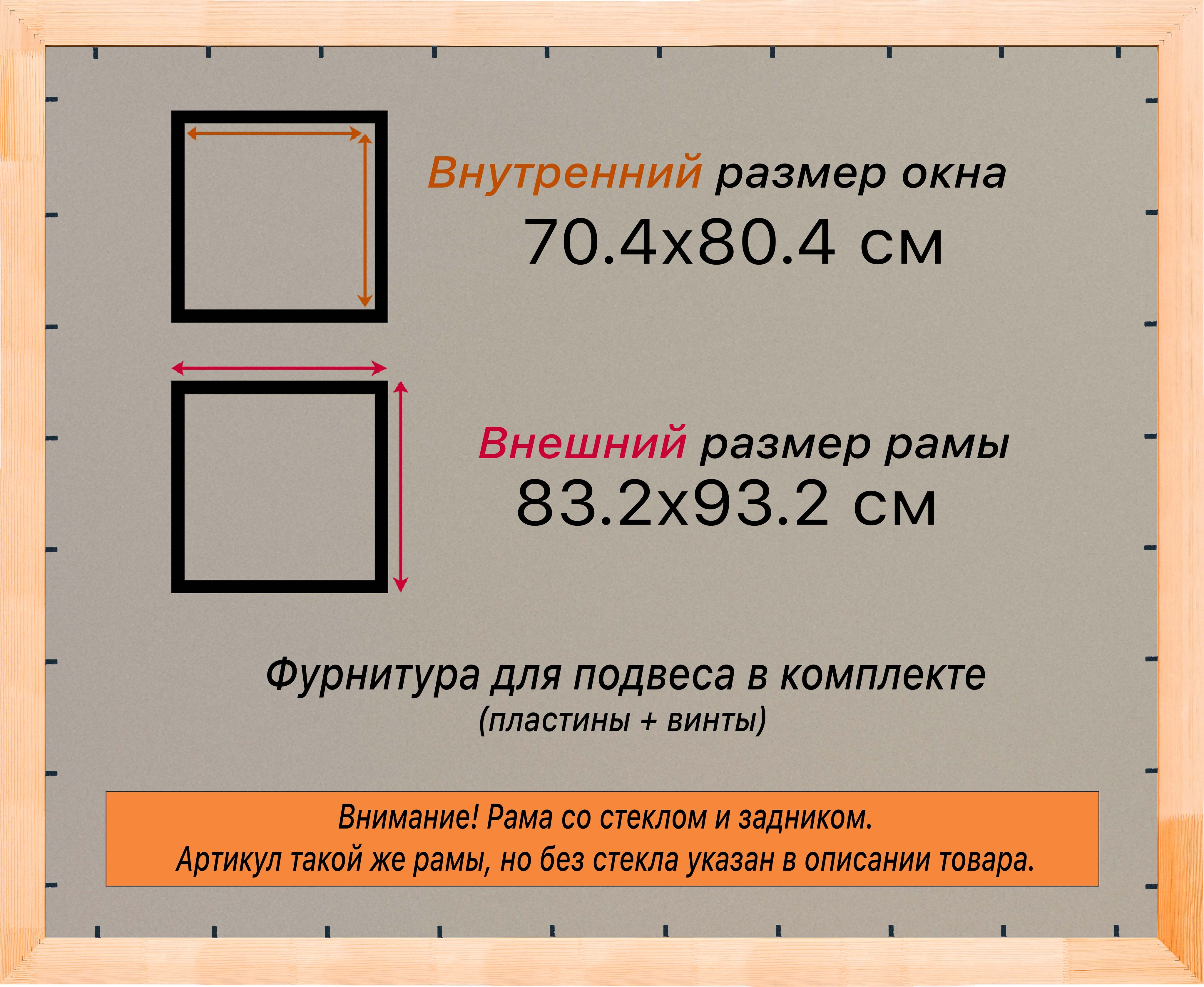 Рама изготовлена из древесины сосны 1 сорта. Подобный неокрашенный багет отлично подойдет для многих современных работ в разных стилях и жанрах. Но главная особенность данного багета в том, что его можно декорировать используя различные краски и лаки, такая рама будет в единственном экземпляре и уже являться эксклюзивным авторским творением. Рама выполнена из дерева (сосна), профиль шлифованный, неокрашенный. Указан внутренний размер окна рамы мм. (запас 2 мм с каждой стороны чтобы ваше изделие свободно поместилось). 1. Основные характеристики: - Размеры рамки: 70x80 (по размеру помещаемого изображения) - Габариты изделия: 84.6x94.6 см. - Цвет: не указан - Профиль: не указан - Сечение рамы: 71x28 мм - Ширина четверти: мм - Высота четверти: мм 2. Комплектация: - Стекло 2мм (обычное) - Задник - Подвесная пластина – 2 шт. - Винты - Прижимы для фиксации задника 3. Назначение: - Подходит для оформления: • Картин, включая картины по номерам • Алмазных мозаик и вышивок крестом • Постеров, фотографий, икон • Паспарту, зеркал • Вышивки бисером и алмазной мозаики • Медалей, орденов, спортивных наград • Старинных часов, ключей, монет или украшений - Используется как настенная или настольная фоторамка (нет подставки) 4. Преимущества: - Универсальность: квадратные и прямоугольные форматы, размеры от 10х10 до 100х100 см - Удобство: можно повесить горизонтально или вертикально - Широкий выбор: разные профили, расцветки, с опцией со стеклом или без - Идеальный подарок: для мамы, папы, бабушки, дедушки, друзей, коллег на день рождения, Новый год, 8 марта, 23 февраля, свадьбу, новоселье или любой другой праздник 5. Применение в интерьере: - Украшение дома: подходит для изображений цветов, живописи, портретов, натюрмортов, городских пейзажей, природы - Идеально для алмазной вышивки, мозаики, фотографий или постера 6. Производство: - Страна: Россия, Санкт-Петербург - Качество: высококачественные материалы с вниманием к деталям