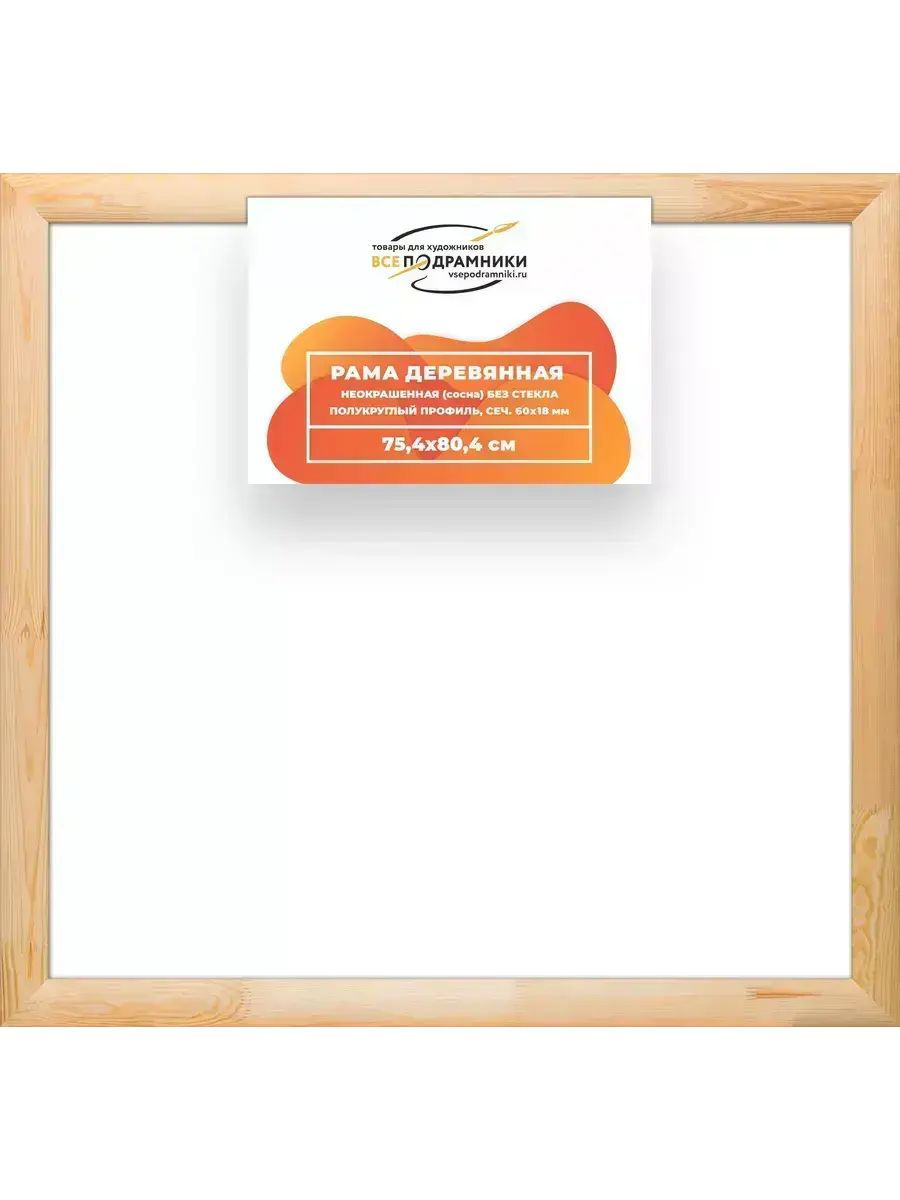 Рама изготовлена из древесины сосны 1 сорта. Подобный неокрашенный багет отлично подойдет для многих современных работ в разных стилях и жанрах. Но главная особенность данного багета в том, что его можно декорировать используя различные краски и лаки, такая рама будет в единственном экземпляре и уже являться эксклюзивным авторским творением. Рама выполнена из дерева (сосна), профиль шлифованный, неокрашенный. Указан внутренний размер окна рамы мм. (запас 2 мм с каждой стороны чтобы ваше изделие свободно поместилось). 1. Основные характеристики: - Размеры рамки: 75x80 (по размеру помещаемого изображения) - Габариты изделия: 87.4x92.4 см. - Цвет: не указан - Профиль: не указан - Сечение рамы: 60x18 мм - Ширина четверти: мм - Высота четверти: мм 2. Комплектация: - Подвесная пластина – 2 шт. - Прижимы для подрамника - Винты 3. Назначение: - Подходит для оформления: • Картин, включая картины по номерам • Алмазных мозаик и вышивок крестом • Постеров, фотографий, икон • Паспарту, зеркал • Вышивки бисером и алмазной мозаики • Медалей, орденов, спортивных наград • Старинных часов, ключей, монет или украшений - Используется как настенная или настольная фоторамка (нет подставки) 4. Преимущества: - Универсальность: квадратные и прямоугольные форматы, размеры от 10х10 до 100х100 см - Удобство: можно повесить горизонтально или вертикально - Широкий выбор: разные профили, расцветки, с опцией со стеклом или без - Идеальный подарок: для мамы, папы, бабушки, дедушки, друзей, коллег на день рождения, Новый год, 8 марта, 23 февраля, свадьбу, новоселье или любой другой праздник 5. Применение в интерьере: - Идеально для алмазной вышивки, мозаики, картин на подрамнике - Украшение дома: подходит для изображений цветов, живописи, портретов, натюрмортов, городских пейзажей, природы 6. Производство: - Страна: Россия, Санкт-Петербург - Качество: высококачественные материалы с вниманием к деталям