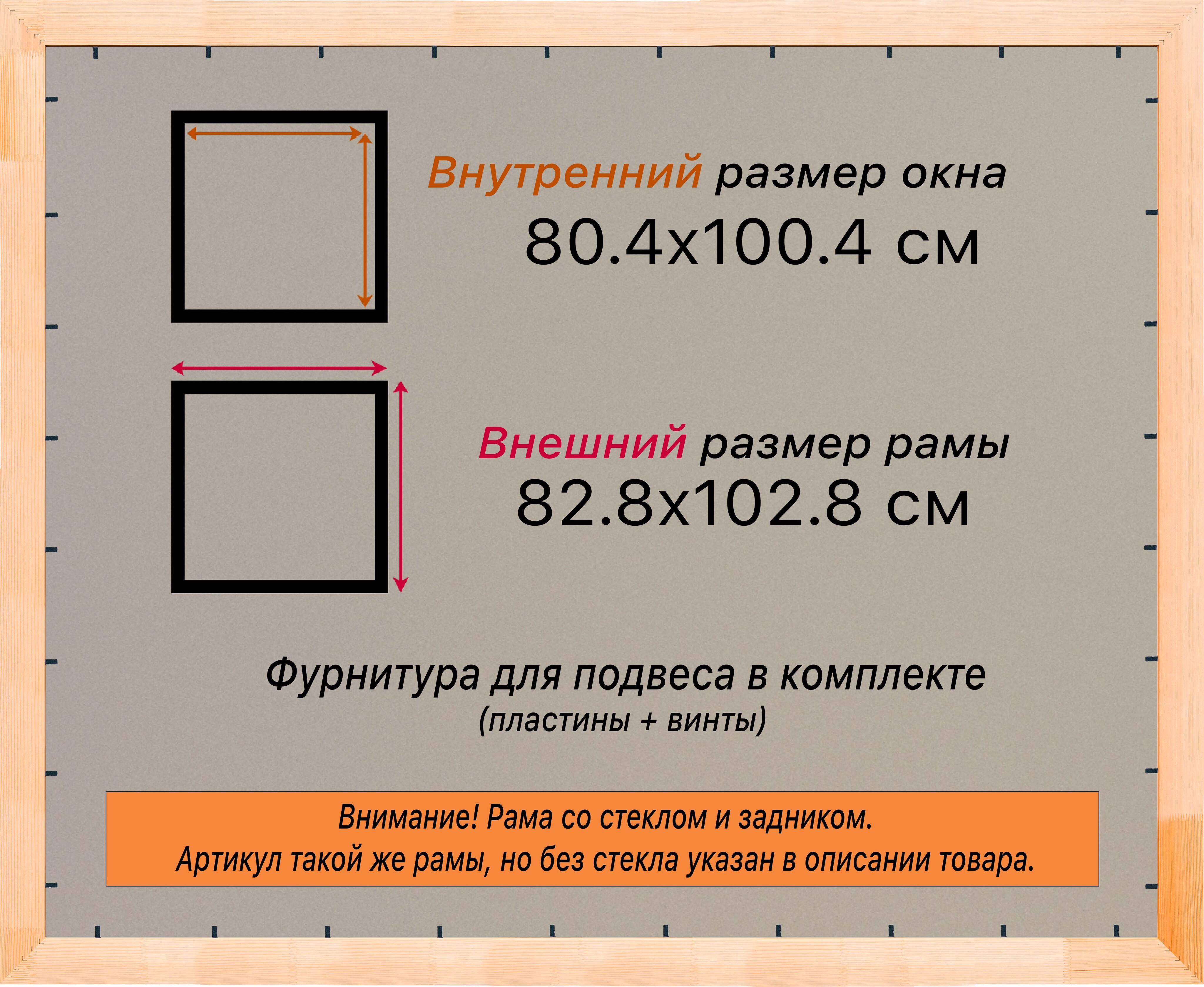 Рама изготовлена из древесины сосны 1 сорта. Подобный неокрашенный багет отлично подойдет для многих современных работ в разных стилях и жанрах. Но главная особенность данного багета в том, что его можно декорировать используя различные краски и лаки, такая рама будет в единственном экземпляре и уже являться эксклюзивным авторским творением. Рама выполнена из дерева (сосна), профиль шлифованный, неокрашенный. Указан внутренний размер окна рамы мм. (запас 2 мм с каждой стороны чтобы ваше изделие свободно поместилось). 1. Основные характеристики: - Размеры рамки: 80x100 (по размеру помещаемого изображения) - Габариты изделия: 85.2x105.2 см. - Цвет: не указан - Профиль: не указан - Сечение рамы: 24x15 мм - Ширина четверти: мм - Высота четверти: мм 2. Комплектация: - Стекло 2мм (обычное) - Задник - Подвесная пластина – 2 шт. - Винты - Прижимы для фиксации задника 3. Назначение: - Подходит для оформления: • Картин, включая картины по номерам • Алмазных мозаик и вышивок крестом • Постеров, фотографий, икон • Паспарту, зеркал • Вышивки бисером и алмазной мозаики • Медалей, орденов, спортивных наград • Старинных часов, ключей, монет или украшений - Используется как настенная или настольная фоторамка (нет подставки) 4. Преимущества: - Универсальность: квадратные и прямоугольные форматы, размеры от 10х10 до 100х100 см - Удобство: можно повесить горизонтально или вертикально - Широкий выбор: разные профили, расцветки, с опцией со стеклом или без - Идеальный подарок: для мамы, папы, бабушки, дедушки, друзей, коллег на день рождения, Новый год, 8 марта, 23 февраля, свадьбу, новоселье или любой другой праздник 5. Применение в интерьере: - Украшение дома: подходит для изображений цветов, живописи, портретов, натюрмортов, городских пейзажей, природы - Идеально для алмазной вышивки, мозаики, фотографий или постера 6. Производство: - Страна: Россия, Санкт-Петербург - Качество: высококачественные материалы с вниманием к деталям