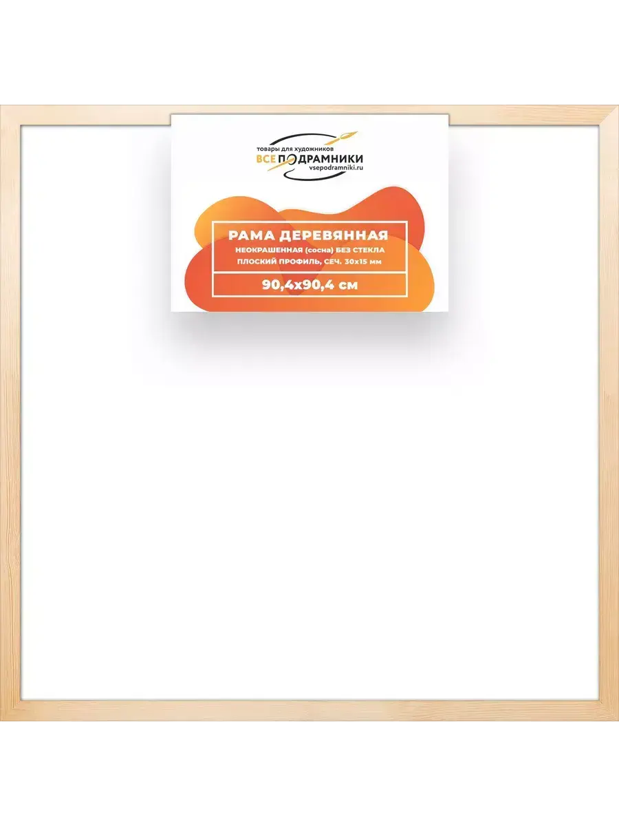 Рама изготовлена из древесины сосны 1 сорта. Подобный неокрашенный багет отлично подойдет для многих современных работ в разных стилях и жанрах. Но главная особенность данного багета в том, что его можно декорировать используя различные краски и лаки, такая рама будет в единственном экземпляре и уже являться эксклюзивным авторским творением. Рама выполнена из дерева (сосна), профиль шлифованный, неокрашенный. Указан внутренний размер окна рамы мм. (запас 2 мм с каждой стороны чтобы ваше изделие свободно поместилось). 1. Основные характеристики: - Размеры рамки: 90x90 (по размеру помещаемого изображения) - Габариты изделия: 96.4x96.4 см. - Цвет: не указан - Профиль: не указан - Сечение рамы: 30x15 мм - Ширина четверти: мм - Высота четверти: мм 2. Комплектация: - Подвесная пластина – 2 шт. - Прижимы для подрамника - Винты 3. Назначение: - Подходит для оформления: • Картин, включая картины по номерам • Алмазных мозаик и вышивок крестом • Постеров, фотографий, икон • Паспарту, зеркал • Вышивки бисером и алмазной мозаики • Медалей, орденов, спортивных наград • Старинных часов, ключей, монет или украшений - Используется как настенная или настольная фоторамка (нет подставки) 4. Преимущества: - Универсальность: квадратные и прямоугольные форматы, размеры от 10х10 до 100х100 см - Удобство: можно повесить горизонтально или вертикально - Широкий выбор: разные профили, расцветки, с опцией со стеклом или без - Идеальный подарок: для мамы, папы, бабушки, дедушки, друзей, коллег на день рождения, Новый год, 8 марта, 23 февраля, свадьбу, новоселье или любой другой праздник 5. Применение в интерьере: - Идеально для алмазной вышивки, мозаики, картин на подрамнике - Украшение дома: подходит для изображений цветов, живописи, портретов, натюрмортов, городских пейзажей, природы 6. Производство: - Страна: Россия, Санкт-Петербург - Качество: высококачественные материалы с вниманием к деталям
