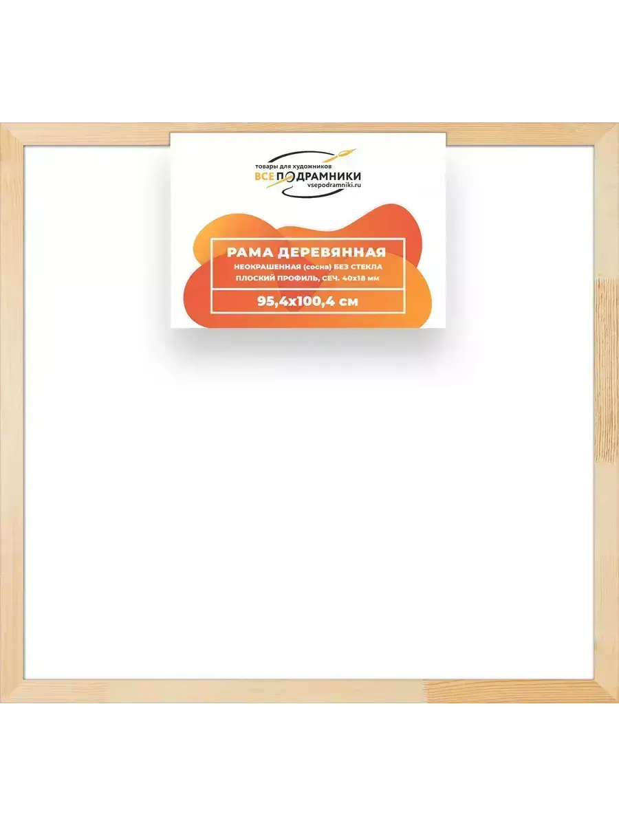 Рама изготовлена из древесины сосны 1 сорта. Подобный неокрашенный багет отлично подойдет для многих современных работ в разных стилях и жанрах. Но главная особенность данного багета в том, что его можно декорировать используя различные краски и лаки, такая рама будет в единственном экземпляре и уже являться эксклюзивным авторским творением. Рама выполнена из дерева (сосна), профиль шлифованный, неокрашенный. Указан внутренний размер окна рамы мм. (запас 2 мм с каждой стороны чтобы ваше изделие свободно поместилось). 1. Основные характеристики: - Размеры рамки: 95x100 (по размеру помещаемого изображения) - Габариты изделия: 103.4x108.4 см. - Цвет: не указан - Профиль: не указан - Сечение рамы: 40x18 мм - Ширина четверти: мм - Высота четверти: мм 2. Комплектация: - Подвесная пластина – 2 шт. - Прижимы для подрамника - Винты 3. Назначение: - Подходит для оформления: • Картин, включая картины по номерам • Алмазных мозаик и вышивок крестом • Постеров, фотографий, икон • Паспарту, зеркал • Вышивки бисером и алмазной мозаики • Медалей, орденов, спортивных наград • Старинных часов, ключей, монет или украшений - Используется как настенная или настольная фоторамка (нет подставки) 4. Преимущества: - Универсальность: квадратные и прямоугольные форматы, размеры от 10х10 до 100х100 см - Удобство: можно повесить горизонтально или вертикально - Широкий выбор: разные профили, расцветки, с опцией со стеклом или без - Идеальный подарок: для мамы, папы, бабушки, дедушки, друзей, коллег на день рождения, Новый год, 8 марта, 23 февраля, свадьбу, новоселье или любой другой праздник 5. Применение в интерьере: - Идеально для алмазной вышивки, мозаики, картин на подрамнике - Украшение дома: подходит для изображений цветов, живописи, портретов, натюрмортов, городских пейзажей, природы 6. Производство: - Страна: Россия, Санкт-Петербург - Качество: высококачественные материалы с вниманием к деталям