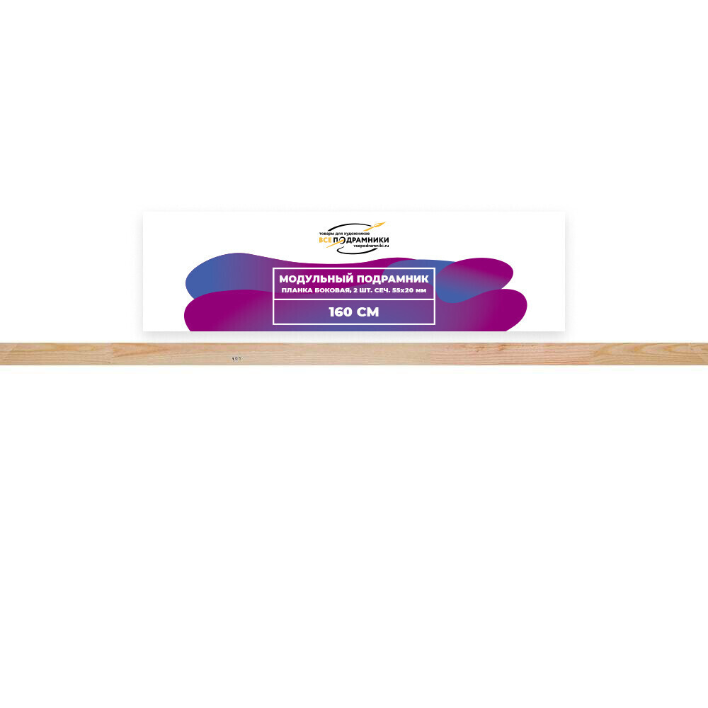 КОМПЛЕКТАЦИЯ • Боковые планки продаются парой (2 шт.) • Для сборки подрамника требуется минимум 2 пары: – 1 пара одного размера – 1 пара другого размера ПРИМЕР СБОРКИ • Планка 50 см (2 шт., сечение 55×20 мм) • Планка 70 см (2 шт., сечение 55×20 мм) В итоге получится подрамник размером 50×70 см ОСОБЕННОСТИ • Планки из древесины сосны 1 сорта • Сечение: 55×18 мм • Все планки можно компоновать между собой • Возможные размеры подрамников: от 15×15 см до 200×200 см ПЕРЕКЛАДИНЫ (СРЕДНИЕ ПЛАНКИ) • Продаются поштучно • Пазы в боковых планках: – До 70 см — без пазов – 70–130 см — 1 паз – 140–180 см — 2 паза – 190–200 см — 3 паза КЛИНЬЯ • Продаются наборами: 8, 10, 12 и 14 шт. ГДЕ НАЙТИ Все наши товары легко найти — кликните на название бренда в карточке товара