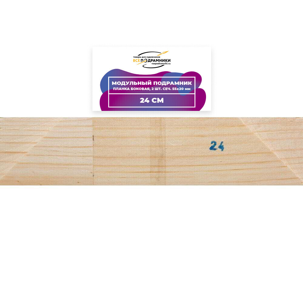 КОМПЛЕКТАЦИЯ • Боковые планки продаются парой (2 шт.) • Для сборки подрамника требуется минимум 2 пары: – 1 пара одного размера – 1 пара другого размера ПРИМЕР СБОРКИ • Планка 50 см (2 шт., сечение 55×20 мм) • Планка 70 см (2 шт., сечение 55×20 мм) В итоге получится подрамник размером 50×70 см ОСОБЕННОСТИ • Планки из древесины сосны 1 сорта • Сечение: 55×18 мм • Все планки можно компоновать между собой • Возможные размеры подрамников: от 15×15 см до 200×200 см ПЕРЕКЛАДИНЫ (СРЕДНИЕ ПЛАНКИ) • Продаются поштучно • Пазы в боковых планках: – До 70 см — без пазов – 70–130 см — 1 паз – 140–180 см — 2 паза – 190–200 см — 3 паза КЛИНЬЯ • Продаются наборами: 8, 10, 12 и 14 шт. ГДЕ НАЙТИ Все наши товары легко найти — кликните на название бренда в карточке товара