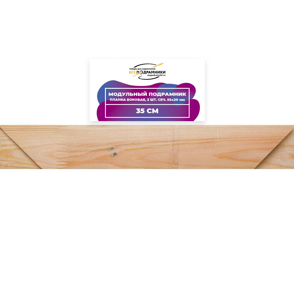 КОМПЛЕКТАЦИЯ • Боковые планки продаются парой (2 шт.) • Для сборки подрамника требуется минимум 2 пары: – 1 пара одного размера – 1 пара другого размера ПРИМЕР СБОРКИ • Планка 50 см (2 шт., сечение 55×20 мм) • Планка 70 см (2 шт., сечение 55×20 мм) В итоге получится подрамник размером 50×70 см ОСОБЕННОСТИ • Планки из древесины сосны 1 сорта • Сечение: 55×18 мм • Все планки можно компоновать между собой • Возможные размеры подрамников: от 15×15 см до 200×200 см ПЕРЕКЛАДИНЫ (СРЕДНИЕ ПЛАНКИ) • Продаются поштучно • Пазы в боковых планках: – До 70 см — без пазов – 70–130 см — 1 паз – 140–180 см — 2 паза – 190–200 см — 3 паза КЛИНЬЯ • Продаются наборами: 8, 10, 12 и 14 шт. ГДЕ НАЙТИ Все наши товары легко найти — кликните на название бренда в карточке товара