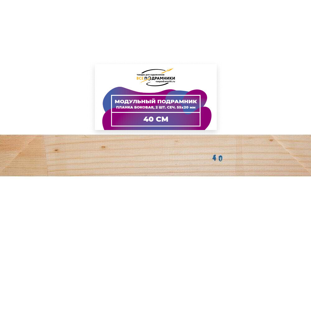 КОМПЛЕКТАЦИЯ • Боковые планки продаются парой (2 шт.) • Для сборки подрамника требуется минимум 2 пары: – 1 пара одного размера – 1 пара другого размера ПРИМЕР СБОРКИ • Планка 50 см (2 шт., сечение 55×20 мм) • Планка 70 см (2 шт., сечение 55×20 мм) В итоге получится подрамник размером 50×70 см ОСОБЕННОСТИ • Планки из древесины сосны 1 сорта • Сечение: 55×18 мм • Все планки можно компоновать между собой • Возможные размеры подрамников: от 15×15 см до 200×200 см ПЕРЕКЛАДИНЫ (СРЕДНИЕ ПЛАНКИ) • Продаются поштучно • Пазы в боковых планках: – До 70 см — без пазов – 70–130 см — 1 паз – 140–180 см — 2 паза – 190–200 см — 3 паза КЛИНЬЯ • Продаются наборами: 8, 10, 12 и 14 шт. ГДЕ НАЙТИ Все наши товары легко найти — кликните на название бренда в карточке товара
