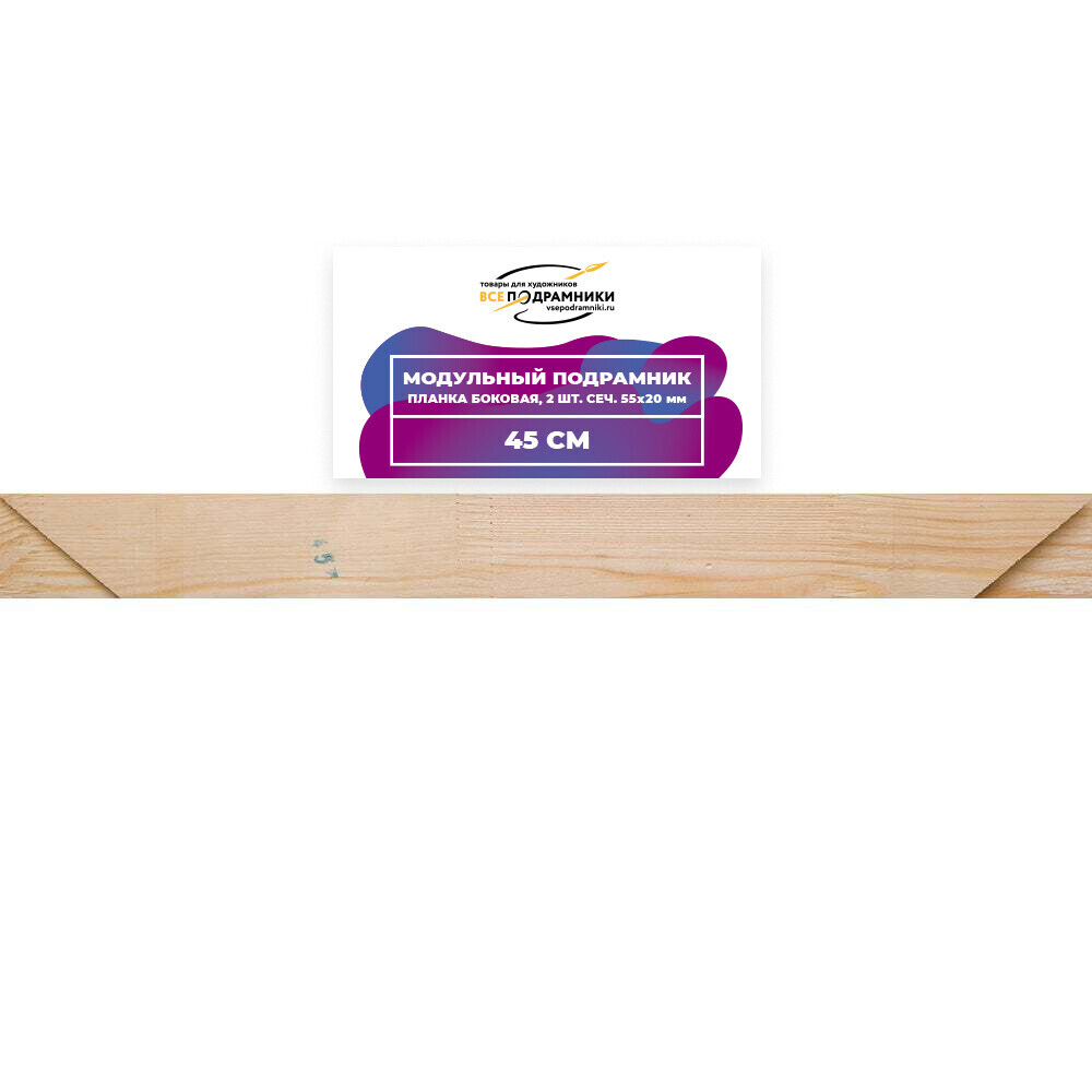 КОМПЛЕКТАЦИЯ • Боковые планки продаются парой (2 шт.) • Для сборки подрамника требуется минимум 2 пары: – 1 пара одного размера – 1 пара другого размера ПРИМЕР СБОРКИ • Планка 50 см (2 шт., сечение 55×20 мм) • Планка 70 см (2 шт., сечение 55×20 мм) В итоге получится подрамник размером 50×70 см ОСОБЕННОСТИ • Планки из древесины сосны 1 сорта • Сечение: 55×18 мм • Все планки можно компоновать между собой • Возможные размеры подрамников: от 15×15 см до 200×200 см ПЕРЕКЛАДИНЫ (СРЕДНИЕ ПЛАНКИ) • Продаются поштучно • Пазы в боковых планках: – До 70 см — без пазов – 70–130 см — 1 паз – 140–180 см — 2 паза – 190–200 см — 3 паза КЛИНЬЯ • Продаются наборами: 8, 10, 12 и 14 шт. ГДЕ НАЙТИ Все наши товары легко найти — кликните на название бренда в карточке товара