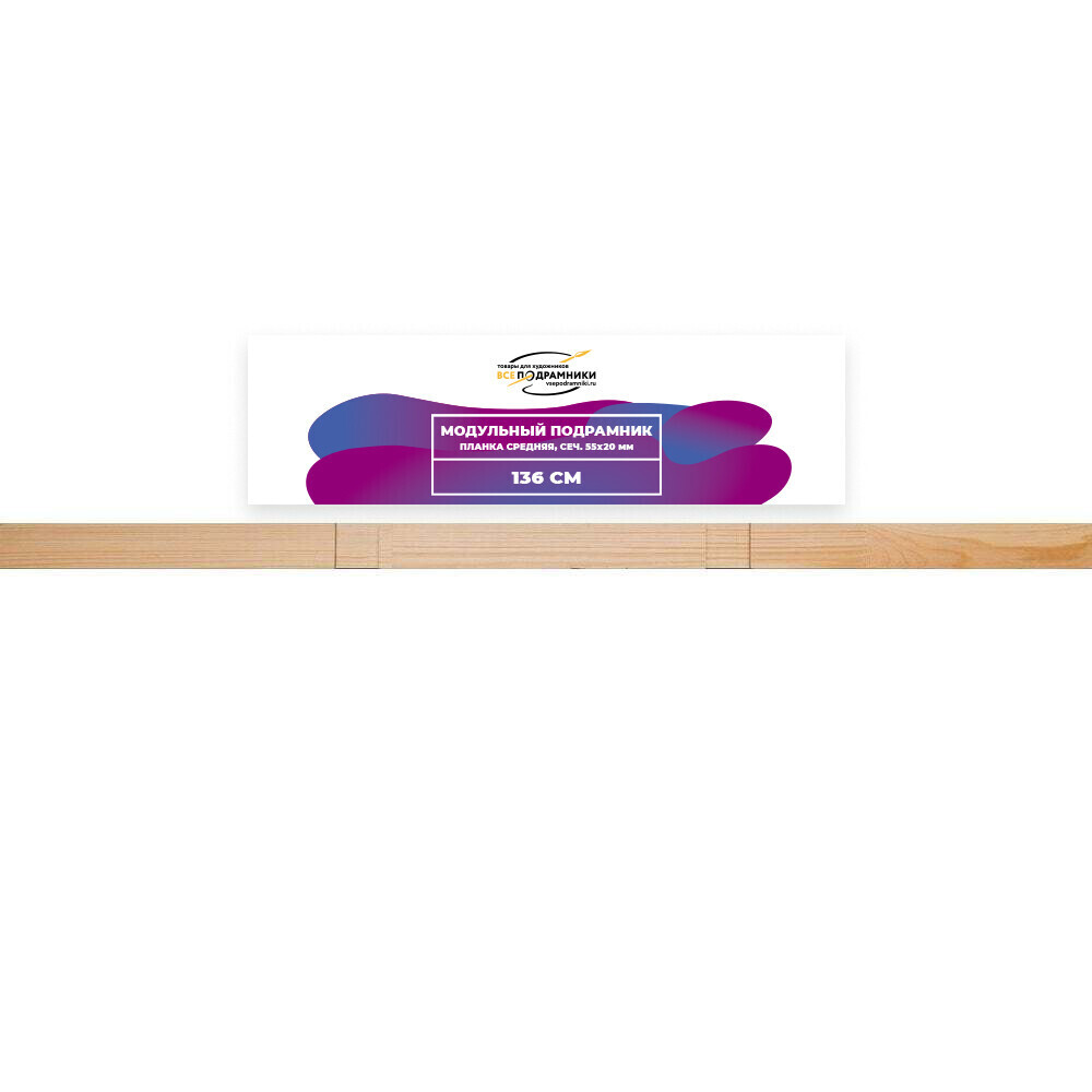 КОМПЛЕКТАЦИЯ • Боковые планки продаются парой (2 шт.) • Для сборки подрамника требуется минимум 2 пары: – 1 пара одного размера – 1 пара другого размера ПРИМЕР СБОРКИ • Планка 50 см (2 шт., сечение 55×20 мм) • Планка 70 см (2 шт., сечение 55×20 мм) В итоге получится подрамник размером 50×70 см ОСОБЕННОСТИ • Планки из древесины сосны 1 сорта • Сечение: 55×18 мм • Все планки можно компоновать между собой • Возможные размеры подрамников: от 15×15 см до 200×200 см ПЕРЕКЛАДИНЫ (СРЕДНИЕ ПЛАНКИ) • Продаются поштучно • Пазы в боковых планках: – До 70 см — без пазов – 70–130 см — 1 паз – 140–180 см — 2 паза – 190–200 см — 3 паза КЛИНЬЯ • Продаются наборами: 8, 10, 12 и 14 шт. ГДЕ НАЙТИ Все наши товары легко найти — кликните на название бренда в карточке товара
