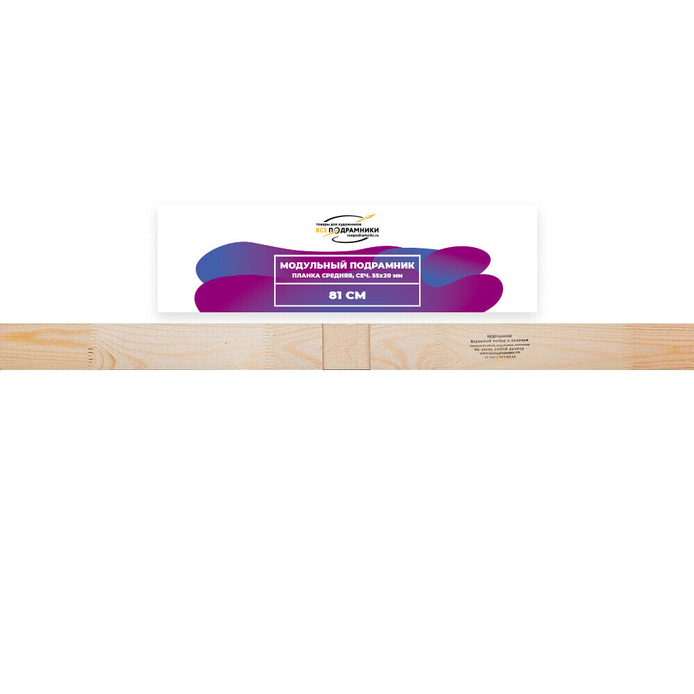 КОМПЛЕКТАЦИЯ • Боковые планки продаются парой (2 шт.) • Для сборки подрамника требуется минимум 2 пары: – 1 пара одного размера – 1 пара другого размера ПРИМЕР СБОРКИ • Планка 50 см (2 шт., сечение 55×20 мм) • Планка 70 см (2 шт., сечение 55×20 мм) В итоге получится подрамник размером 50×70 см ОСОБЕННОСТИ • Планки из древесины сосны 1 сорта • Сечение: 55×18 мм • Все планки можно компоновать между собой • Возможные размеры подрамников: от 15×15 см до 200×200 см ПЕРЕКЛАДИНЫ (СРЕДНИЕ ПЛАНКИ) • Продаются поштучно • Пазы в боковых планках: – До 70 см — без пазов – 70–130 см — 1 паз – 140–180 см — 2 паза – 190–200 см — 3 паза КЛИНЬЯ • Продаются наборами: 8, 10, 12 и 14 шт. ГДЕ НАЙТИ Все наши товары легко найти — кликните на название бренда в карточке товара