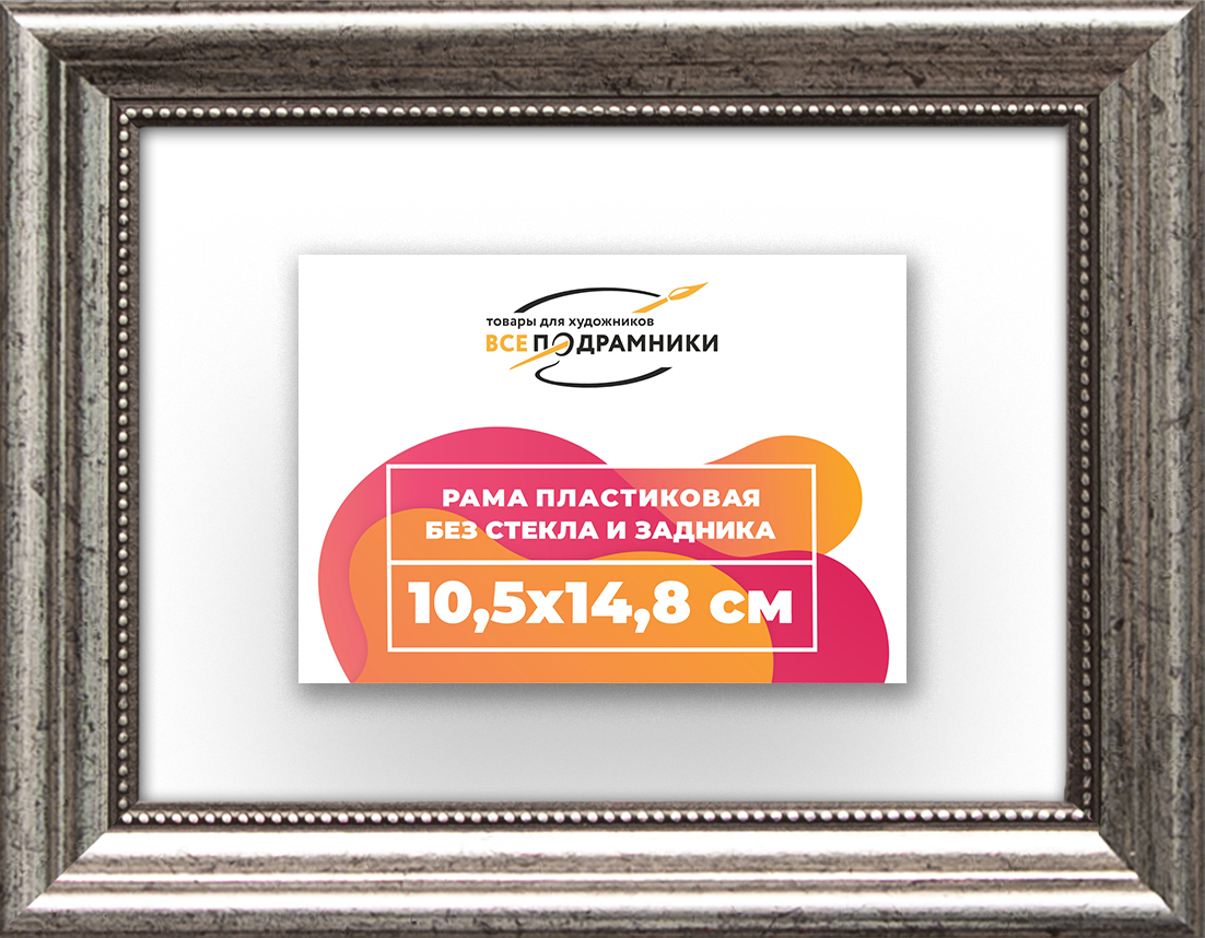 Пластиковая рама 10,5x14,8 без стекла и задника Пластиковая рама без стекла и задника изготовлена из безопасного и экологически чистого первичного полистирола высшей категории. Производитель: “ВсеПодрамники”. Для удобства установки к стандартному размеру добавлено 4 мм (по 2 мм с каждой стороны), чтобы ваше изделие легко поместилось в раму. 1. Основные характеристики: - Размеры рамки: 10,5x14,8 (по размеру помещаемого изображения) - Габариты изделия: 13.3x17.6 см. - Цвет: серебристый - Профиль: классический - Сечение рамы: 19x20 мм - Ширина четверти: 7 мм - Высота четверти: 10 мм 2. Комплектация: - Подвесная пластина – 2 шт. - Прижимы для подрамника - Винты 3. Назначение: - Подходит для оформления: • Картин, включая картины по номерам • Алмазных мозаик и вышивок крестом • Постеров, фотографий, икон • Паспарту, зеркал • Вышивки бисером и алмазной мозаики • Медалей, орденов, спортивных наград • Старинных часов, ключей, монет или украшений - Используется как настенная или настольная фоторамка (нет подставки) 4. Преимущества: - Универсальность: квадратные и прямоугольные форматы, размеры от 10х10 до 100х100 см - Удобство: можно повесить горизонтально или вертикально - Широкий выбор: разные профили, расцветки, с опцией со стеклом или без - Идеальный подарок: для мамы, папы, бабушки, дедушки, друзей, коллег на день рождения, Новый год, 8 марта, 23 февраля, свадьбу, новоселье или любой другой праздник 5. Применение в интерьере: - Идеально для алмазной вышивки, мозаики, картин на подрамнике - Украшение дома: подходит для изображений цветов, живописи, портретов, натюрмортов, городских пейзажей, природы 6. Производство: - Страна: Россия, Санкт-Петербург - Качество: высококачественные материалы с вниманием к деталям