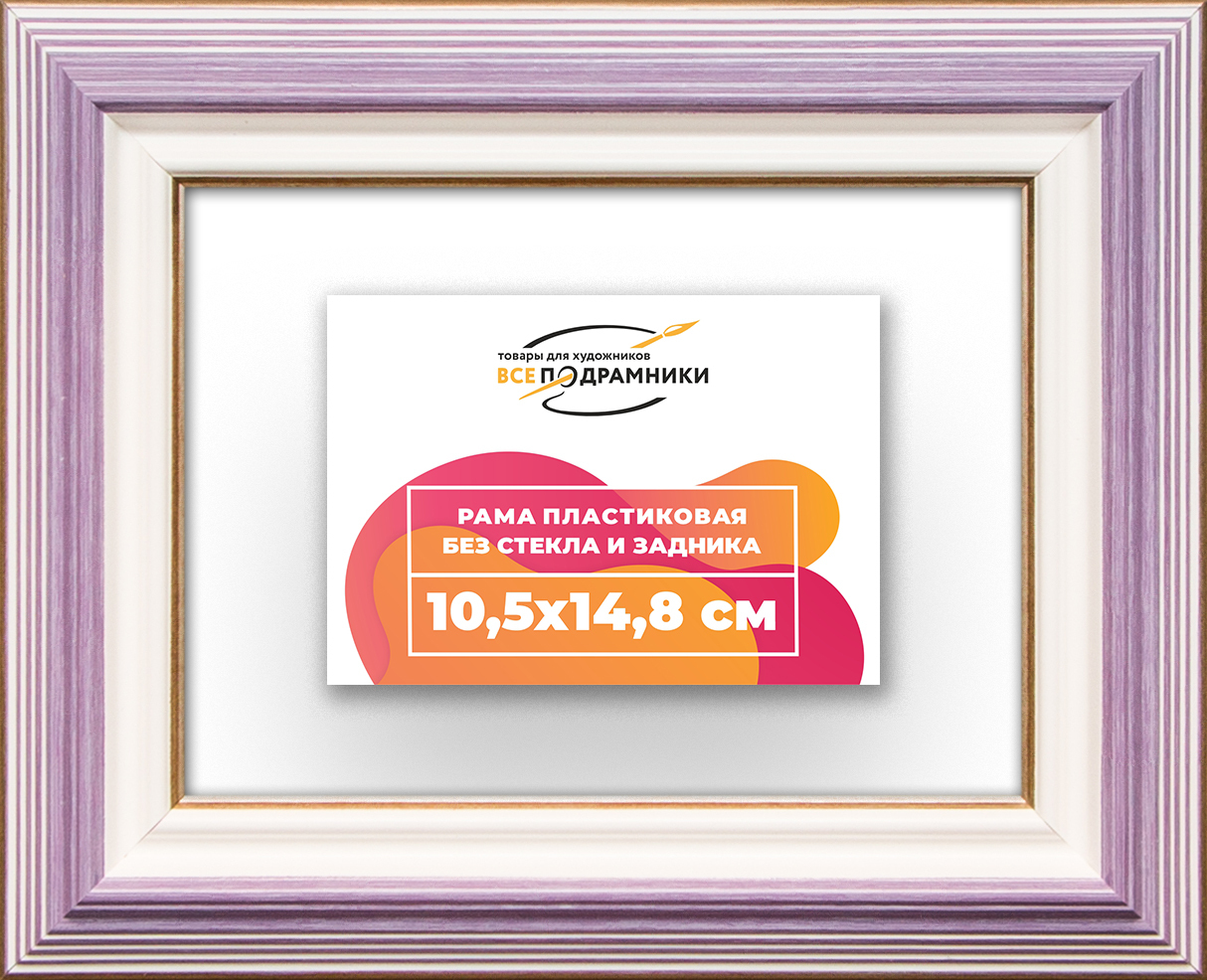 Пластиковая рама 10,5x14,8 без стекла и задника Пластиковая рама без стекла и задника изготовлена из безопасного и экологически чистого первичного полистирола высшей категории. Производитель: “ВсеПодрамники”. Для удобства установки к стандартному размеру добавлено 4 мм (по 2 мм с каждой стороны), чтобы ваше изделие легко поместилось в раму. 1. Основные характеристики: - Размеры рамки: 10,5x14,8 (по размеру помещаемого изображения) - Габариты изделия: 17.3x21.6 см. - Цвет: фиолетовый - Профиль: классический - Сечение рамы: 39x22 мм - Ширина четверти: 7 мм - Высота четверти: 10 мм 2. Комплектация: - Подвесная пластина – 2 шт. - Прижимы для подрамника - Винты 3. Назначение: - Подходит для оформления: • Картин, включая картины по номерам • Алмазных мозаик и вышивок крестом • Постеров, фотографий, икон • Паспарту, зеркал • Вышивки бисером и алмазной мозаики • Медалей, орденов, спортивных наград • Старинных часов, ключей, монет или украшений - Используется как настенная или настольная фоторамка (нет подставки) 4. Преимущества: - Универсальность: квадратные и прямоугольные форматы, размеры от 10х10 до 100х100 см - Удобство: можно повесить горизонтально или вертикально - Широкий выбор: разные профили, расцветки, с опцией со стеклом или без - Идеальный подарок: для мамы, папы, бабушки, дедушки, друзей, коллег на день рождения, Новый год, 8 марта, 23 февраля, свадьбу, новоселье или любой другой праздник 5. Применение в интерьере: - Идеально для алмазной вышивки, мозаики, картин на подрамнике - Украшение дома: подходит для изображений цветов, живописи, портретов, натюрмортов, городских пейзажей, природы 6. Производство: - Страна: Россия, Санкт-Петербург - Качество: высококачественные материалы с вниманием к деталям
