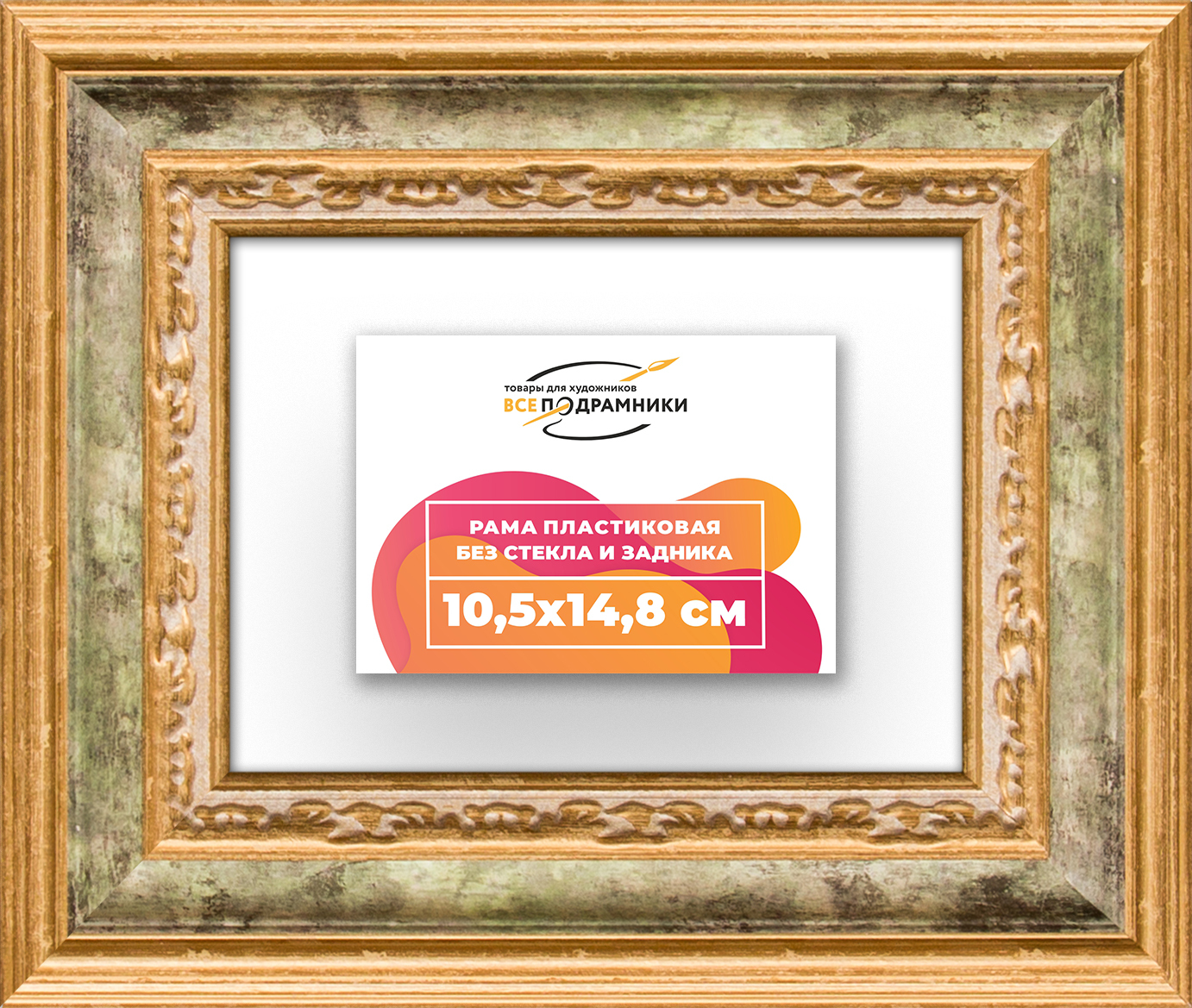 Пластиковая рама 10,5x14,8 без стекла и задника Пластиковая рама без стекла и задника изготовлена из безопасного и экологически чистого первичного полистирола высшей категории. Производитель: “ВсеПодрамники”. Для удобства установки к стандартному размеру добавлено 4 мм (по 2 мм с каждой стороны), чтобы ваше изделие легко поместилось в раму. 1. Основные характеристики: - Размеры рамки: 10,5x14,8 (по размеру помещаемого изображения) - Габариты изделия: 20.1x24.4 см. - Цвет: зеленый - Профиль: классический - Сечение рамы: 53x32 мм - Ширина четверти: 7 мм - Высота четверти: 10 мм 2. Комплектация: - Подвесная пластина – 2 шт. - Прижимы для подрамника - Винты 3. Назначение: - Подходит для оформления: • Картин, включая картины по номерам • Алмазных мозаик и вышивок крестом • Постеров, фотографий, икон • Паспарту, зеркал • Вышивки бисером и алмазной мозаики • Медалей, орденов, спортивных наград • Старинных часов, ключей, монет или украшений - Используется как настенная или настольная фоторамка (нет подставки) 4. Преимущества: - Универсальность: квадратные и прямоугольные форматы, размеры от 10х10 до 100х100 см - Удобство: можно повесить горизонтально или вертикально - Широкий выбор: разные профили, расцветки, с опцией со стеклом или без - Идеальный подарок: для мамы, папы, бабушки, дедушки, друзей, коллег на день рождения, Новый год, 8 марта, 23 февраля, свадьбу, новоселье или любой другой праздник 5. Применение в интерьере: - Идеально для алмазной вышивки, мозаики, картин на подрамнике - Украшение дома: подходит для изображений цветов, живописи, портретов, натюрмортов, городских пейзажей, природы 6. Производство: - Страна: Россия, Санкт-Петербург - Качество: высококачественные материалы с вниманием к деталям