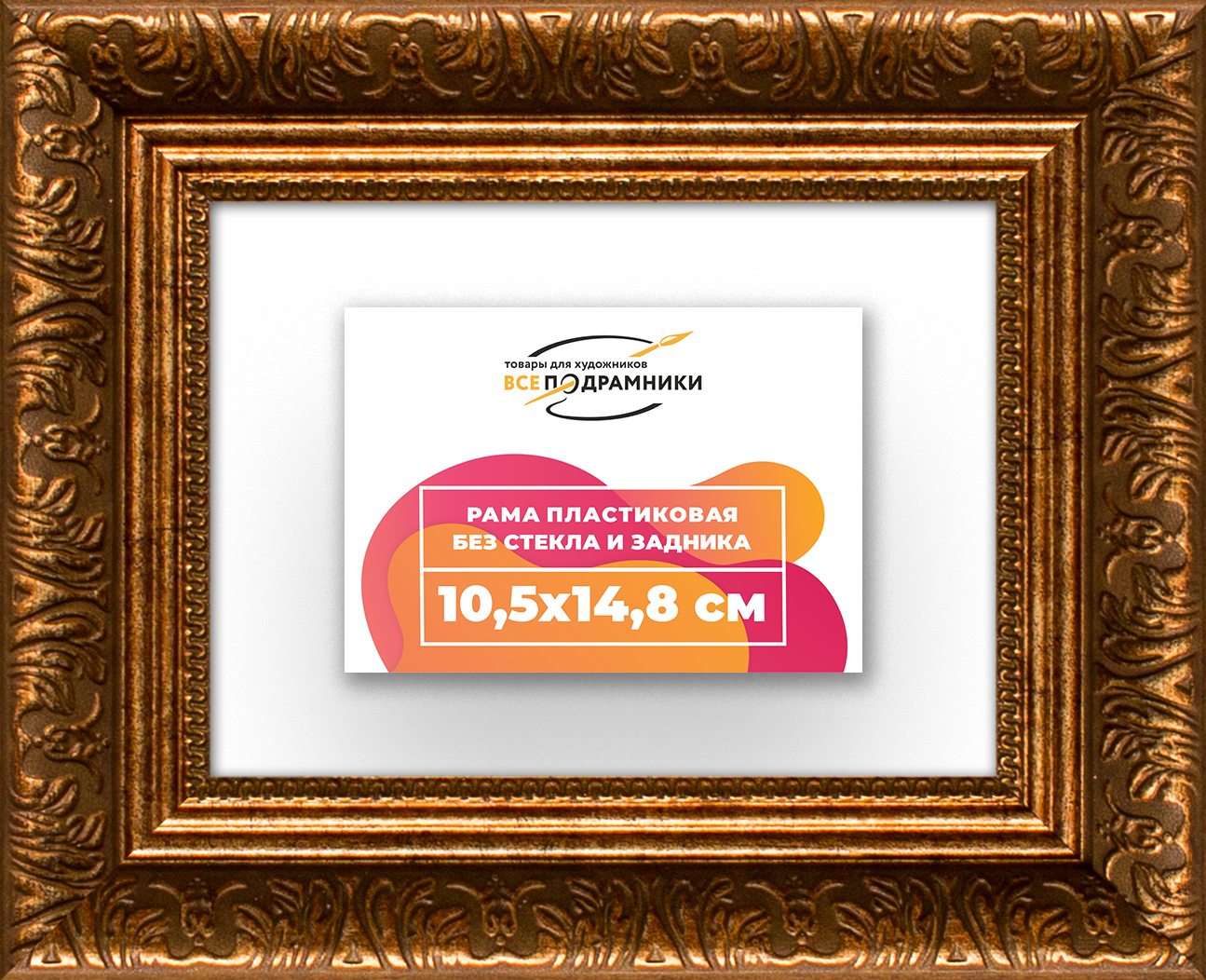 Пластиковая рама 10,5x14,8 без стекла и задника Пластиковая рама без стекла и задника изготовлена из безопасного и экологически чистого первичного полистирола высшей категории. Производитель: “ВсеПодрамники”. Для удобства установки к стандартному размеру добавлено 4 мм (по 2 мм с каждой стороны), чтобы ваше изделие легко поместилось в раму. 1. Основные характеристики: - Размеры рамки: 10,5x14,8 (по размеру помещаемого изображения) - Габариты изделия: 20.5x24.8 см. - Цвет: коричневый - Профиль: классический - Сечение рамы: 55x36 мм - Ширина четверти: 7 мм - Высота четверти: 10 мм 2. Комплектация: - Подвесная пластина – 2 шт. - Прижимы для подрамника - Винты 3. Назначение: - Подходит для оформления: • Картин, включая картины по номерам • Алмазных мозаик и вышивок крестом • Постеров, фотографий, икон • Паспарту, зеркал • Вышивки бисером и алмазной мозаики • Медалей, орденов, спортивных наград • Старинных часов, ключей, монет или украшений - Используется как настенная или настольная фоторамка (нет подставки) 4. Преимущества: - Универсальность: квадратные и прямоугольные форматы, размеры от 10х10 до 100х100 см - Удобство: можно повесить горизонтально или вертикально - Широкий выбор: разные профили, расцветки, с опцией со стеклом или без - Идеальный подарок: для мамы, папы, бабушки, дедушки, друзей, коллег на день рождения, Новый год, 8 марта, 23 февраля, свадьбу, новоселье или любой другой праздник 5. Применение в интерьере: - Идеально для алмазной вышивки, мозаики, картин на подрамнике - Украшение дома: подходит для изображений цветов, живописи, портретов, натюрмортов, городских пейзажей, природы 6. Производство: - Страна: Россия, Санкт-Петербург - Качество: высококачественные материалы с вниманием к деталям