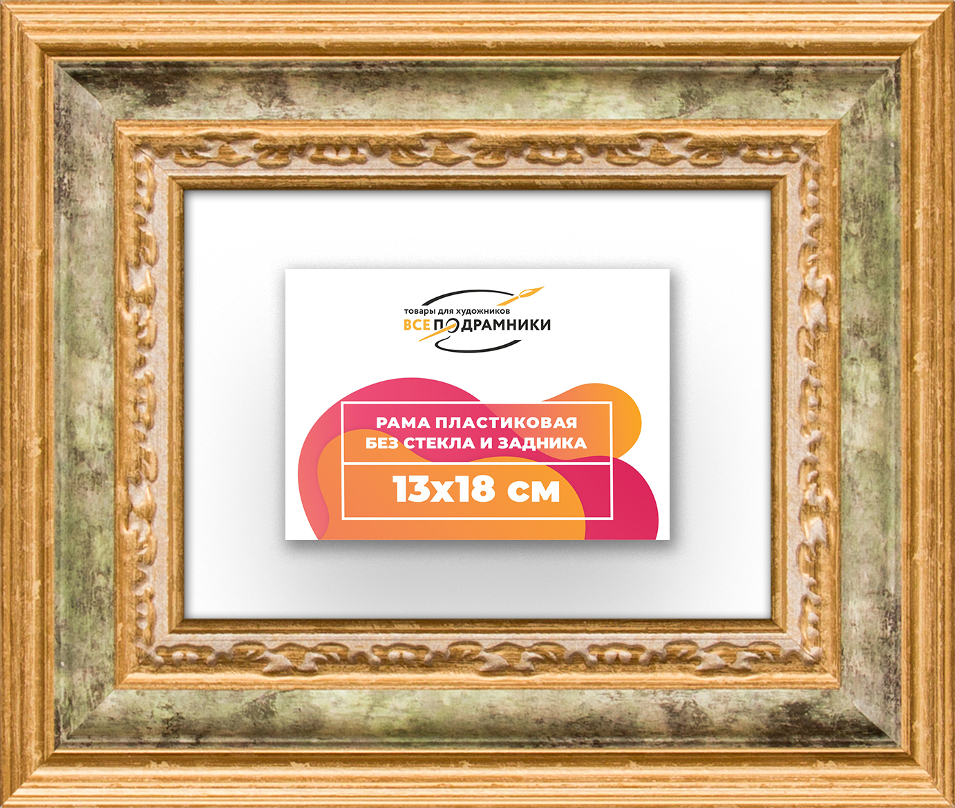 Пластиковая рама 13x18 без стекла и задника Пластиковая рама без стекла и задника изготовлена из безопасного и экологически чистого первичного полистирола высшей категории. Производитель: “ВсеПодрамники”. Для удобства установки к стандартному размеру добавлено 4 мм (по 2 мм с каждой стороны), чтобы ваше изделие легко поместилось в раму. 1. Основные характеристики: - Размеры рамки: 13x18 (по размеру помещаемого изображения) - Габариты изделия: 22.6x27.6 см. - Цвет: зеленый - Профиль: классический - Сечение рамы: 53x32 мм - Ширина четверти: 7 мм - Высота четверти: 10 мм 2. Комплектация: - Подвесная пластина – 2 шт. - Прижимы для подрамника - Винты 3. Назначение: - Подходит для оформления: • Картин, включая картины по номерам • Алмазных мозаик и вышивок крестом • Постеров, фотографий, икон • Паспарту, зеркал • Вышивки бисером и алмазной мозаики • Медалей, орденов, спортивных наград • Старинных часов, ключей, монет или украшений - Используется как настенная или настольная фоторамка (нет подставки) 4. Преимущества: - Универсальность: квадратные и прямоугольные форматы, размеры от 10х10 до 100х100 см - Удобство: можно повесить горизонтально или вертикально - Широкий выбор: разные профили, расцветки, с опцией со стеклом или без - Идеальный подарок: для мамы, папы, бабушки, дедушки, друзей, коллег на день рождения, Новый год, 8 марта, 23 февраля, свадьбу, новоселье или любой другой праздник 5. Применение в интерьере: - Идеально для алмазной вышивки, мозаики, картин на подрамнике - Украшение дома: подходит для изображений цветов, живописи, портретов, натюрмортов, городских пейзажей, природы 6. Производство: - Страна: Россия, Санкт-Петербург - Качество: высококачественные материалы с вниманием к деталям