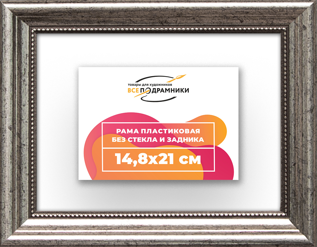 Пластиковая рама 14,8x21 без стекла и задника Пластиковая рама без стекла и задника изготовлена из безопасного и экологически чистого первичного полистирола высшей категории. Производитель: “ВсеПодрамники”. Для удобства установки к стандартному размеру добавлено 4 мм (по 2 мм с каждой стороны), чтобы ваше изделие легко поместилось в раму. 1. Основные характеристики: - Размеры рамки: 14,8x21 (по размеру помещаемого изображения) - Габариты изделия: 17.6x23.8 см. - Цвет: серебристый - Профиль: классический - Сечение рамы: 19x20 мм - Ширина четверти: 7 мм - Высота четверти: 10 мм 2. Комплектация: - Подвесная пластина – 2 шт. - Прижимы для подрамника - Винты 3. Назначение: - Подходит для оформления: • Картин, включая картины по номерам • Алмазных мозаик и вышивок крестом • Постеров, фотографий, икон • Паспарту, зеркал • Вышивки бисером и алмазной мозаики • Медалей, орденов, спортивных наград • Старинных часов, ключей, монет или украшений - Используется как настенная или настольная фоторамка (нет подставки) 4. Преимущества: - Универсальность: квадратные и прямоугольные форматы, размеры от 10х10 до 100х100 см - Удобство: можно повесить горизонтально или вертикально - Широкий выбор: разные профили, расцветки, с опцией со стеклом или без - Идеальный подарок: для мамы, папы, бабушки, дедушки, друзей, коллег на день рождения, Новый год, 8 марта, 23 февраля, свадьбу, новоселье или любой другой праздник 5. Применение в интерьере: - Идеально для алмазной вышивки, мозаики, картин на подрамнике - Украшение дома: подходит для изображений цветов, живописи, портретов, натюрмортов, городских пейзажей, природы 6. Производство: - Страна: Россия, Санкт-Петербург - Качество: высококачественные материалы с вниманием к деталям