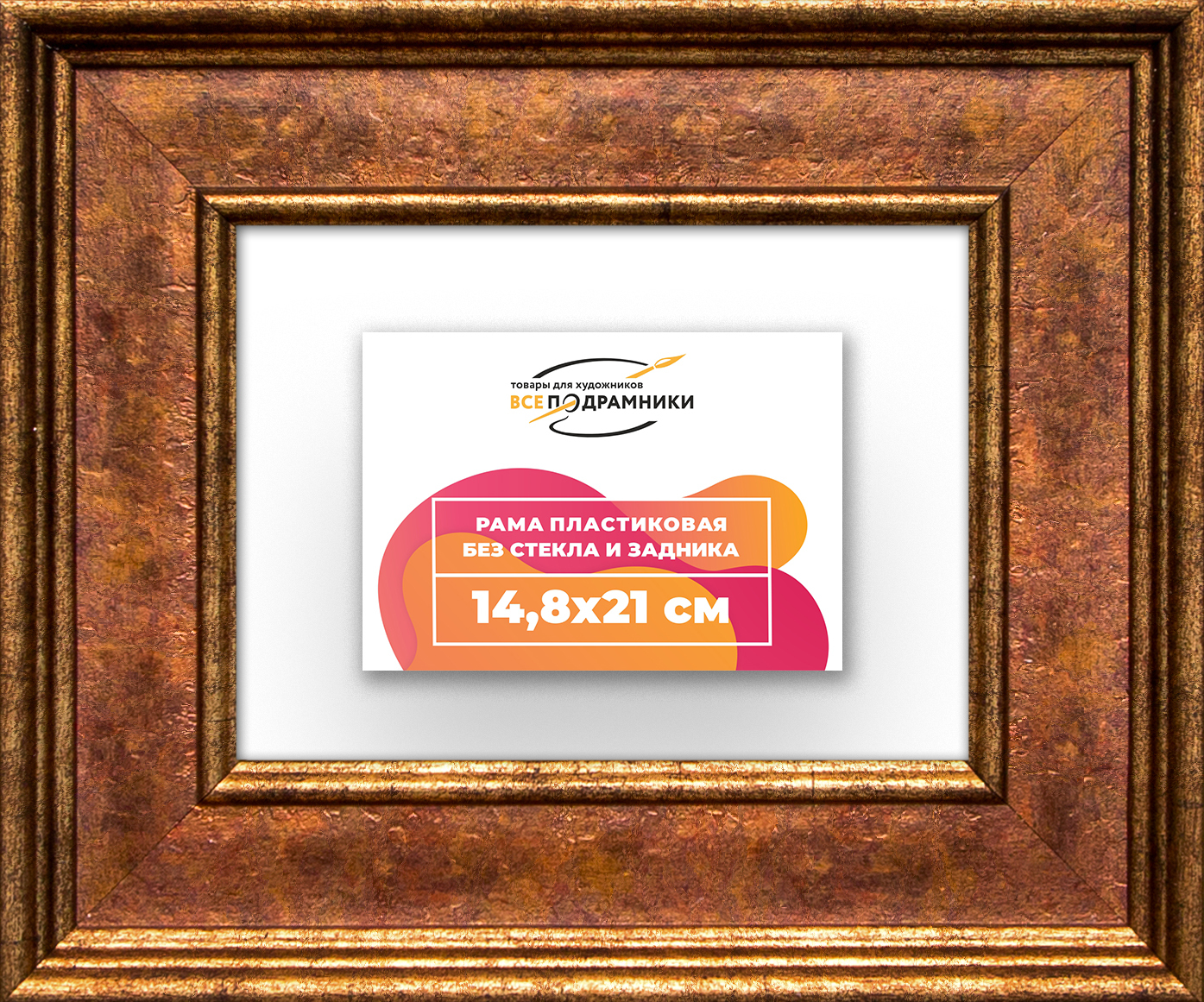 Пластиковая рама 14,8x21 без стекла и задника Пластиковая рама без стекла и задника изготовлена из безопасного и экологически чистого первичного полистирола высшей категории. Производитель: “ВсеПодрамники”. Для удобства установки к стандартному размеру добавлено 4 мм (по 2 мм с каждой стороны), чтобы ваше изделие легко поместилось в раму. 1. Основные характеристики: - Размеры рамки: 14,8x21 (по размеру помещаемого изображения) - Габариты изделия: 23.8x30.0 см. - Цвет: коричневый - Профиль: классический - Сечение рамы: 50x30 мм - Ширина четверти: 7 мм - Высота четверти: 10 мм 2. Комплектация: - Подвесная пластина – 2 шт. - Прижимы для подрамника - Винты 3. Назначение: - Подходит для оформления: • Картин, включая картины по номерам • Алмазных мозаик и вышивок крестом • Постеров, фотографий, икон • Паспарту, зеркал • Вышивки бисером и алмазной мозаики • Медалей, орденов, спортивных наград • Старинных часов, ключей, монет или украшений - Используется как настенная или настольная фоторамка (нет подставки) 4. Преимущества: - Универсальность: квадратные и прямоугольные форматы, размеры от 10х10 до 100х100 см - Удобство: можно повесить горизонтально или вертикально - Широкий выбор: разные профили, расцветки, с опцией со стеклом или без - Идеальный подарок: для мамы, папы, бабушки, дедушки, друзей, коллег на день рождения, Новый год, 8 марта, 23 февраля, свадьбу, новоселье или любой другой праздник 5. Применение в интерьере: - Идеально для алмазной вышивки, мозаики, картин на подрамнике - Украшение дома: подходит для изображений цветов, живописи, портретов, натюрмортов, городских пейзажей, природы 6. Производство: - Страна: Россия, Санкт-Петербург - Качество: высококачественные материалы с вниманием к деталям