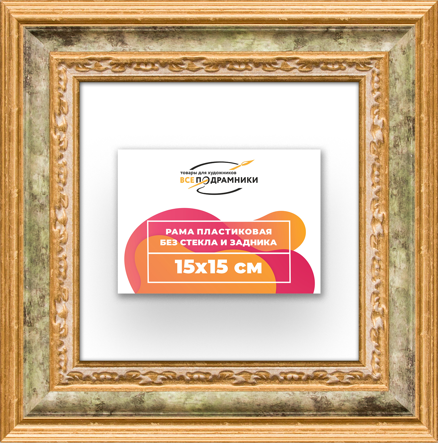Пластиковая рама 15x15 без стекла и задника Пластиковая рама без стекла и задника изготовлена из безопасного и экологически чистого первичного полистирола высшей категории. Производитель: “ВсеПодрамники”. Для удобства установки к стандартному размеру добавлено 4 мм (по 2 мм с каждой стороны), чтобы ваше изделие легко поместилось в раму. 1. Основные характеристики: - Размеры рамки: 15x15 (по размеру помещаемого изображения) - Габариты изделия: 24.6x24.6 см. - Цвет: зеленый - Профиль: классический - Сечение рамы: 53x32 мм - Ширина четверти: 7 мм - Высота четверти: 10 мм 2. Комплектация: - Подвесная пластина – 2 шт. - Прижимы для подрамника - Винты 3. Назначение: - Подходит для оформления: • Картин, включая картины по номерам • Алмазных мозаик и вышивок крестом • Постеров, фотографий, икон • Паспарту, зеркал • Вышивки бисером и алмазной мозаики • Медалей, орденов, спортивных наград • Старинных часов, ключей, монет или украшений - Используется как настенная или настольная фоторамка (нет подставки) 4. Преимущества: - Универсальность: квадратные и прямоугольные форматы, размеры от 10х10 до 100х100 см - Удобство: можно повесить горизонтально или вертикально - Широкий выбор: разные профили, расцветки, с опцией со стеклом или без - Идеальный подарок: для мамы, папы, бабушки, дедушки, друзей, коллег на день рождения, Новый год, 8 марта, 23 февраля, свадьбу, новоселье или любой другой праздник 5. Применение в интерьере: - Идеально для алмазной вышивки, мозаики, картин на подрамнике - Украшение дома: подходит для изображений цветов, живописи, портретов, натюрмортов, городских пейзажей, природы 6. Производство: - Страна: Россия, Санкт-Петербург - Качество: высококачественные материалы с вниманием к деталям