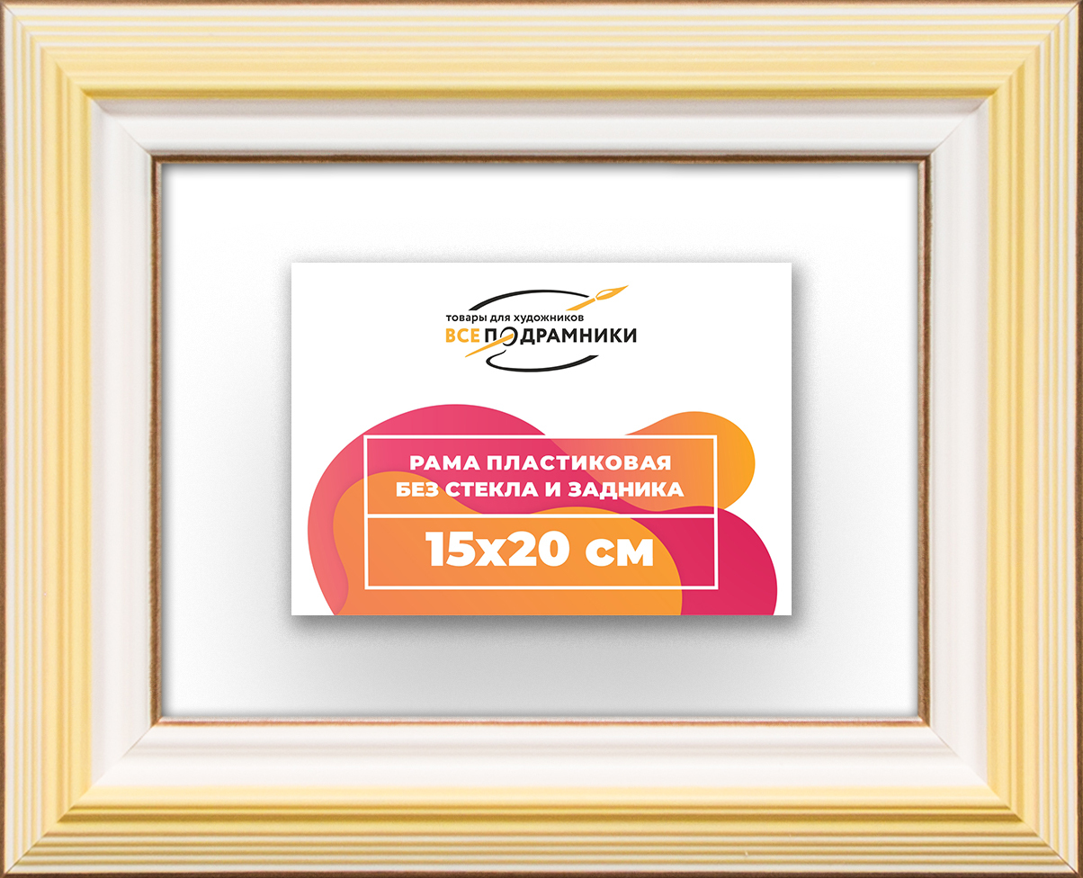 Пластиковая рама 15x20 без стекла и задника Пластиковая рама без стекла и задника изготовлена из безопасного и экологически чистого первичного полистирола высшей категории. Производитель: “ВсеПодрамники”. Для удобства установки к стандартному размеру добавлено 4 мм (по 2 мм с каждой стороны), чтобы ваше изделие легко поместилось в раму. 1. Основные характеристики: - Размеры рамки: 15x20 (по размеру помещаемого изображения) - Габариты изделия: 21.8x26.8 см. - Цвет: желтый - Профиль: классический - Сечение рамы: 39x22 мм - Ширина четверти: 7 мм - Высота четверти: 10 мм 2. Комплектация: - Подвесная пластина – 2 шт. - Прижимы для подрамника - Винты 3. Назначение: - Подходит для оформления: • Картин, включая картины по номерам • Алмазных мозаик и вышивок крестом • Постеров, фотографий, икон • Паспарту, зеркал • Вышивки бисером и алмазной мозаики • Медалей, орденов, спортивных наград • Старинных часов, ключей, монет или украшений - Используется как настенная или настольная фоторамка (нет подставки) 4. Преимущества: - Универсальность: квадратные и прямоугольные форматы, размеры от 10х10 до 100х100 см - Удобство: можно повесить горизонтально или вертикально - Широкий выбор: разные профили, расцветки, с опцией со стеклом или без - Идеальный подарок: для мамы, папы, бабушки, дедушки, друзей, коллег на день рождения, Новый год, 8 марта, 23 февраля, свадьбу, новоселье или любой другой праздник 5. Применение в интерьере: - Идеально для алмазной вышивки, мозаики, картин на подрамнике - Украшение дома: подходит для изображений цветов, живописи, портретов, натюрмортов, городских пейзажей, природы 6. Производство: - Страна: Россия, Санкт-Петербург - Качество: высококачественные материалы с вниманием к деталям
