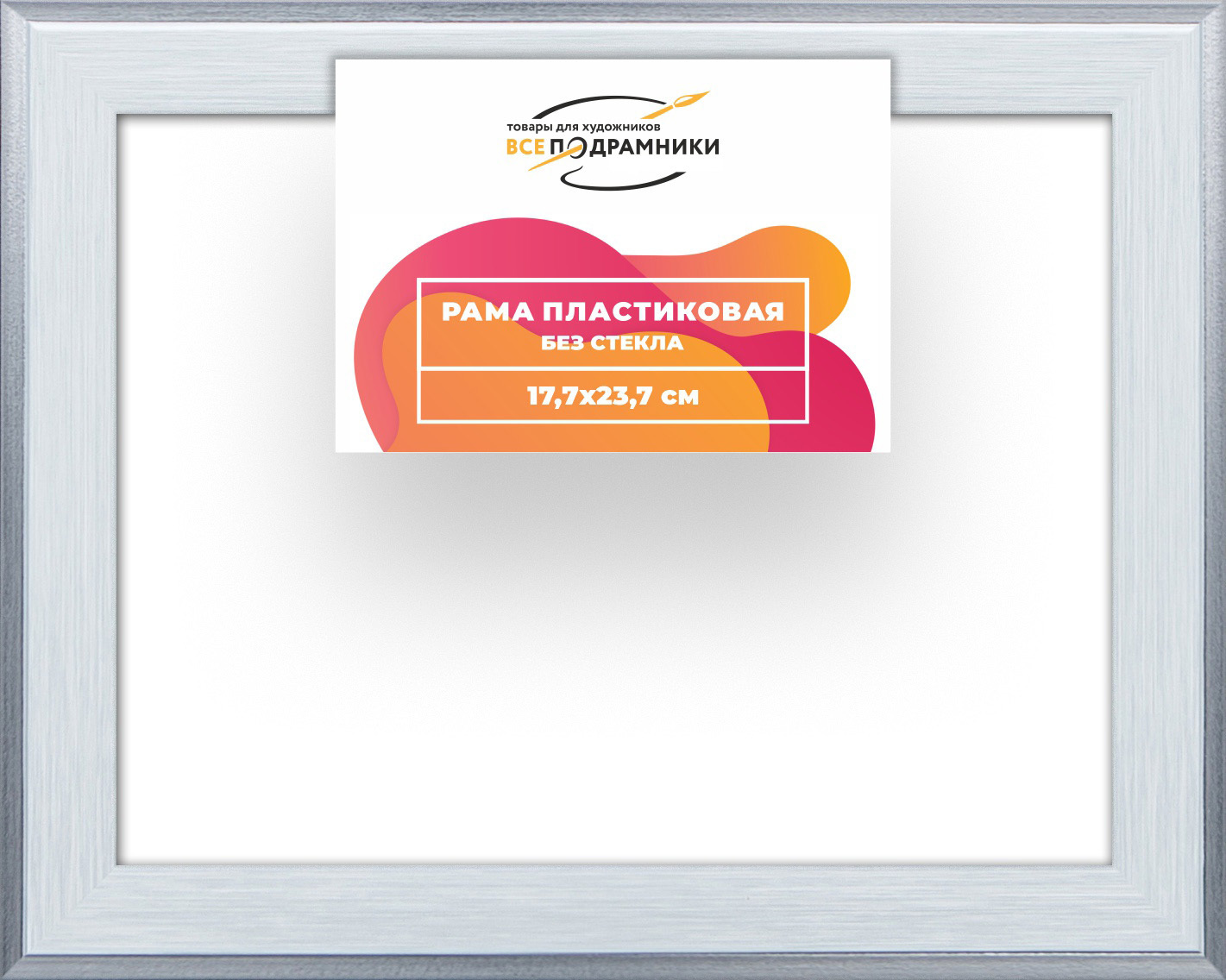 Пластиковая рама 17,7x23,7 без стекла и задника Пластиковая рама без стекла и задника изготовлена из безопасного и экологически чистого первичного полистирола высшей категории. Производитель: “ВсеПодрамники”. Для удобства установки к стандартному размеру добавлено 4 мм (по 2 мм с каждой стороны), чтобы ваше изделие легко поместилось в раму. 1. Основные характеристики: - Размеры рамки: 17,7x23,7 (по размеру помещаемого изображения) - Габариты изделия: 23.7x29.7 см. - Цвет: серый - Профиль: классический - Сечение рамы: 35x15 мм - Ширина четверти: 7 мм - Высота четверти: 10 мм 2. Комплектация: - Подвесная пластина – 2 шт. - Прижимы для подрамника - Винты 3. Назначение: - Подходит для оформления: • Картин, включая картины по номерам • Алмазных мозаик и вышивок крестом • Постеров, фотографий, икон • Паспарту, зеркал • Вышивки бисером и алмазной мозаики • Медалей, орденов, спортивных наград • Старинных часов, ключей, монет или украшений - Используется как настенная или настольная фоторамка (нет подставки) 4. Преимущества: - Универсальность: квадратные и прямоугольные форматы, размеры от 10х10 до 100х100 см - Удобство: можно повесить горизонтально или вертикально - Широкий выбор: разные профили, расцветки, с опцией со стеклом или без - Идеальный подарок: для мамы, папы, бабушки, дедушки, друзей, коллег на день рождения, Новый год, 8 марта, 23 февраля, свадьбу, новоселье или любой другой праздник 5. Применение в интерьере: - Идеально для алмазной вышивки, мозаики, картин на подрамнике - Украшение дома: подходит для изображений цветов, живописи, портретов, натюрмортов, городских пейзажей, природы 6. Производство: - Страна: Россия, Санкт-Петербург - Качество: высококачественные материалы с вниманием к деталям