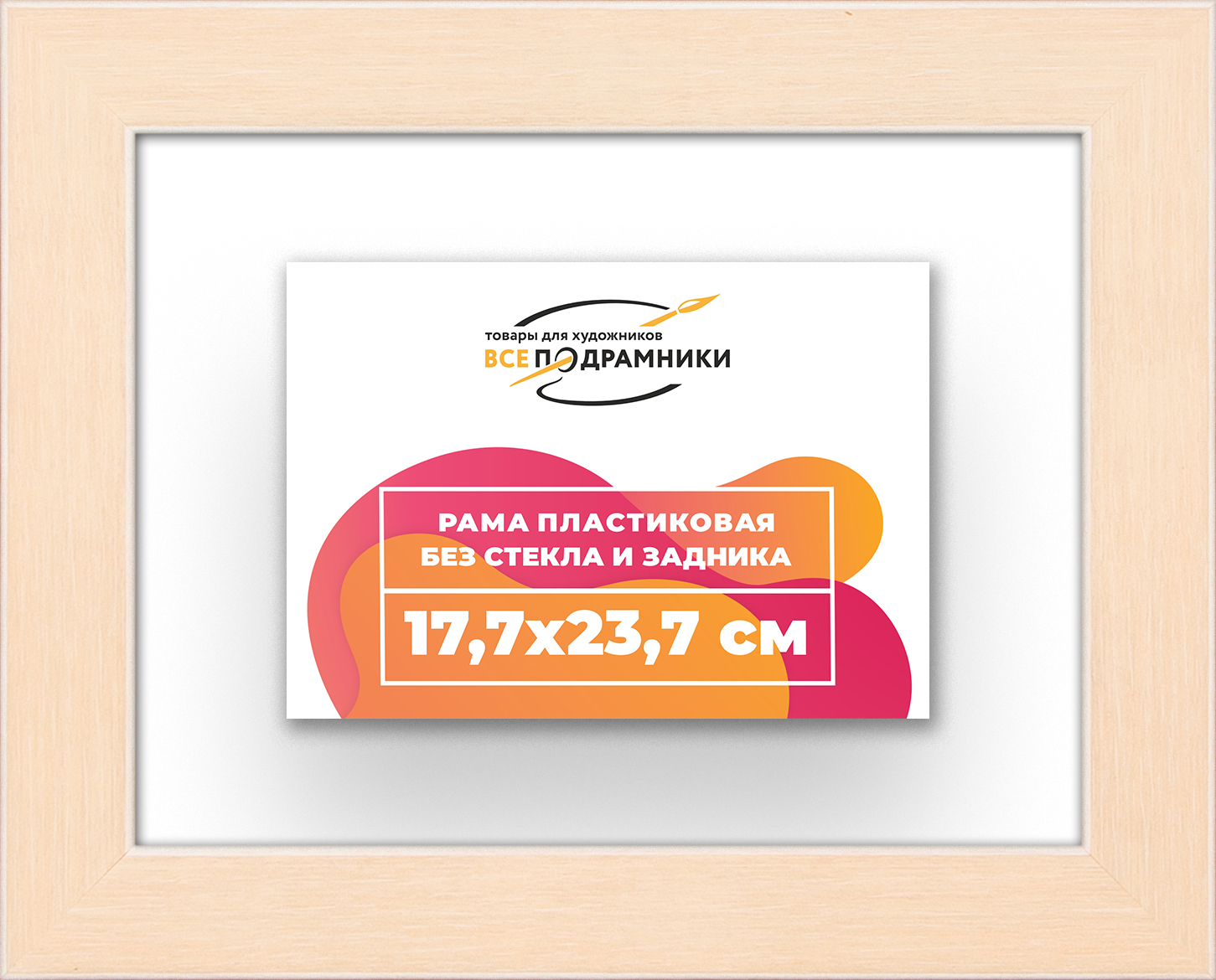 Пластиковая рама 17,7x23,7 без стекла и задника Пластиковая рама без стекла и задника изготовлена из безопасного и экологически чистого первичного полистирола высшей категории. Производитель: “ВсеПодрамники”. Для удобства установки к стандартному размеру добавлено 4 мм (по 2 мм с каждой стороны), чтобы ваше изделие легко поместилось в раму. 1. Основные характеристики: - Размеры рамки: 17,7x23,7 (по размеру помещаемого изображения) - Габариты изделия: 23.5x29.5 см. - Цвет: кремовый - Профиль: классический - Сечение рамы: 34x24 мм - Ширина четверти: 7 мм - Высота четверти: 10 мм 2. Комплектация: - Подвесная пластина – 2 шт. - Прижимы для подрамника - Винты 3. Назначение: - Подходит для оформления: • Картин, включая картины по номерам • Алмазных мозаик и вышивок крестом • Постеров, фотографий, икон • Паспарту, зеркал • Вышивки бисером и алмазной мозаики • Медалей, орденов, спортивных наград • Старинных часов, ключей, монет или украшений - Используется как настенная или настольная фоторамка (нет подставки) 4. Преимущества: - Универсальность: квадратные и прямоугольные форматы, размеры от 10х10 до 100х100 см - Удобство: можно повесить горизонтально или вертикально - Широкий выбор: разные профили, расцветки, с опцией со стеклом или без - Идеальный подарок: для мамы, папы, бабушки, дедушки, друзей, коллег на день рождения, Новый год, 8 марта, 23 февраля, свадьбу, новоселье или любой другой праздник 5. Применение в интерьере: - Идеально для алмазной вышивки, мозаики, картин на подрамнике - Украшение дома: подходит для изображений цветов, живописи, портретов, натюрмортов, городских пейзажей, природы 6. Производство: - Страна: Россия, Санкт-Петербург - Качество: высококачественные материалы с вниманием к деталям