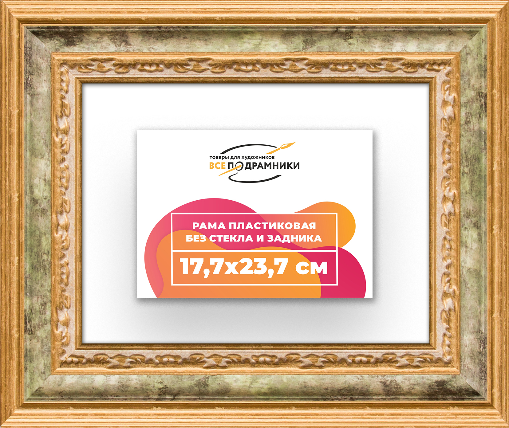 Пластиковая рама 17,7x23,7 без стекла и задника Пластиковая рама без стекла и задника изготовлена из безопасного и экологически чистого первичного полистирола высшей категории. Производитель: “ВсеПодрамники”. Для удобства установки к стандартному размеру добавлено 4 мм (по 2 мм с каждой стороны), чтобы ваше изделие легко поместилось в раму. 1. Основные характеристики: - Размеры рамки: 17,7x23,7 (по размеру помещаемого изображения) - Габариты изделия: 27.3x33.3 см. - Цвет: зеленый - Профиль: классический - Сечение рамы: 53x32 мм - Ширина четверти: 7 мм - Высота четверти: 10 мм 2. Комплектация: - Подвесная пластина – 2 шт. - Прижимы для подрамника - Винты 3. Назначение: - Подходит для оформления: • Картин, включая картины по номерам • Алмазных мозаик и вышивок крестом • Постеров, фотографий, икон • Паспарту, зеркал • Вышивки бисером и алмазной мозаики • Медалей, орденов, спортивных наград • Старинных часов, ключей, монет или украшений - Используется как настенная или настольная фоторамка (нет подставки) 4. Преимущества: - Универсальность: квадратные и прямоугольные форматы, размеры от 10х10 до 100х100 см - Удобство: можно повесить горизонтально или вертикально - Широкий выбор: разные профили, расцветки, с опцией со стеклом или без - Идеальный подарок: для мамы, папы, бабушки, дедушки, друзей, коллег на день рождения, Новый год, 8 марта, 23 февраля, свадьбу, новоселье или любой другой праздник 5. Применение в интерьере: - Идеально для алмазной вышивки, мозаики, картин на подрамнике - Украшение дома: подходит для изображений цветов, живописи, портретов, натюрмортов, городских пейзажей, природы 6. Производство: - Страна: Россия, Санкт-Петербург - Качество: высококачественные материалы с вниманием к деталям