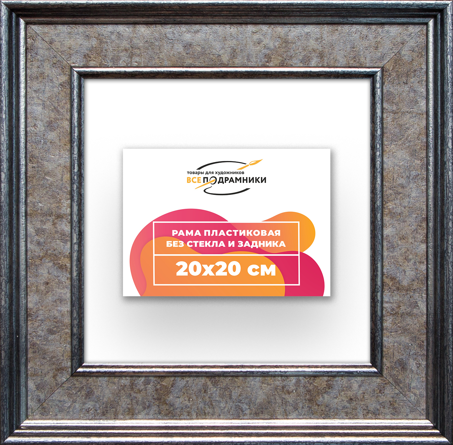 Пластиковая рама 20x20 без стекла и задника Пластиковая рама без стекла и задника изготовлена из безопасного и экологически чистого первичного полистирола высшей категории. Производитель: “ВсеПодрамники”. Для удобства установки к стандартному размеру добавлено 4 мм (по 2 мм с каждой стороны), чтобы ваше изделие легко поместилось в раму. 1. Основные характеристики: - Размеры рамки: 20x20 (по размеру помещаемого изображения) - Габариты изделия: 29.0x29.0 см. - Цвет: серебро - Профиль: классический - Сечение рамы: 50x30 мм - Ширина четверти: 7 мм - Высота четверти: 10 мм 2. Комплектация: - Подвесная пластина – 2 шт. - Прижимы для подрамника - Винты 3. Назначение: - Подходит для оформления: • Картин, включая картины по номерам • Алмазных мозаик и вышивок крестом • Постеров, фотографий, икон • Паспарту, зеркал • Вышивки бисером и алмазной мозаики • Медалей, орденов, спортивных наград • Старинных часов, ключей, монет или украшений - Используется как настенная или настольная фоторамка (нет подставки) 4. Преимущества: - Универсальность: квадратные и прямоугольные форматы, размеры от 10х10 до 100х100 см - Удобство: можно повесить горизонтально или вертикально - Широкий выбор: разные профили, расцветки, с опцией со стеклом или без - Идеальный подарок: для мамы, папы, бабушки, дедушки, друзей, коллег на день рождения, Новый год, 8 марта, 23 февраля, свадьбу, новоселье или любой другой праздник 5. Применение в интерьере: - Идеально для алмазной вышивки, мозаики, картин на подрамнике - Украшение дома: подходит для изображений цветов, живописи, портретов, натюрмортов, городских пейзажей, природы 6. Производство: - Страна: Россия, Санкт-Петербург - Качество: высококачественные материалы с вниманием к деталям