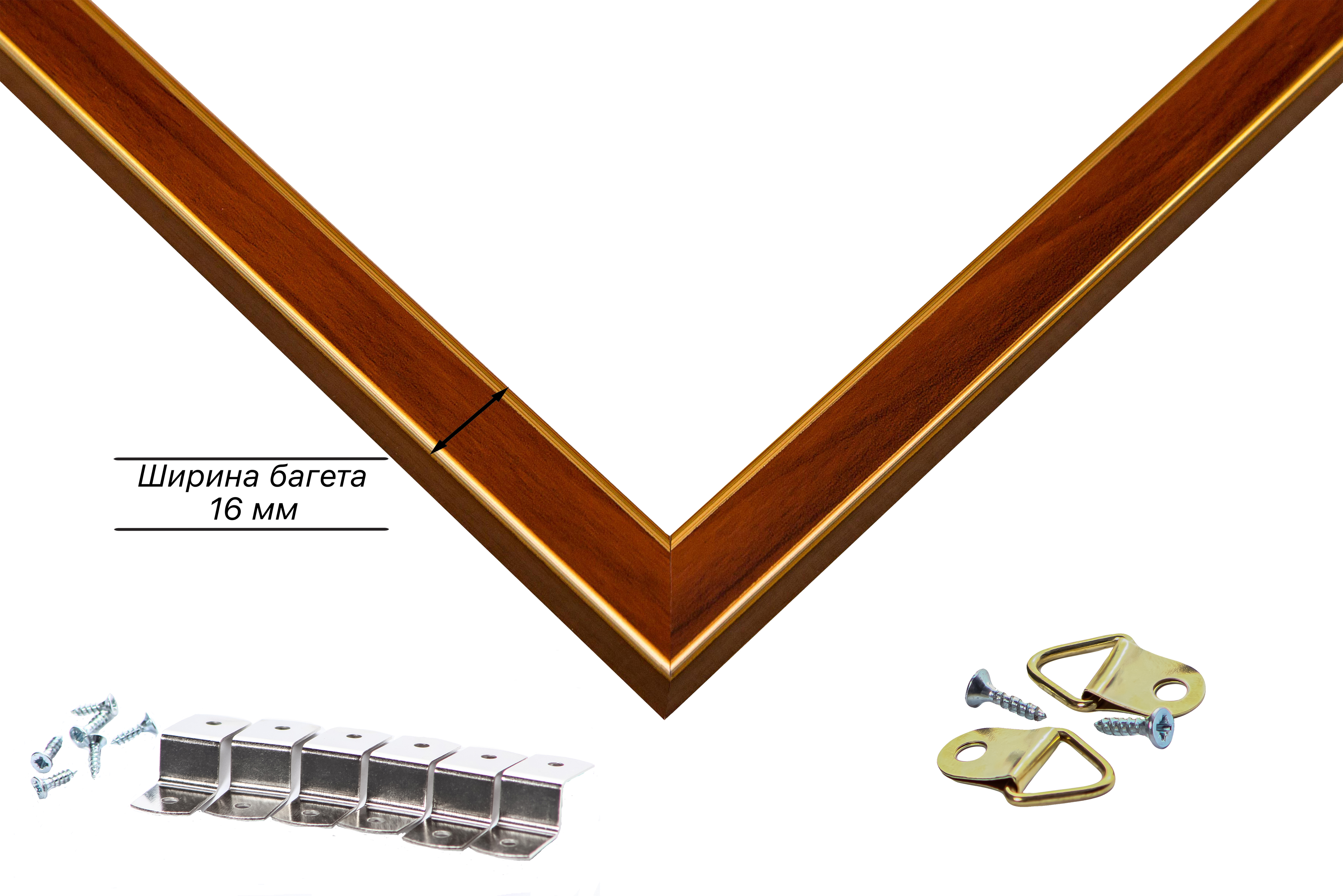 Пластиковая рама 20x50 без стекла и задника Пластиковая рама без стекла и задника изготовлена из безопасного и экологически чистого первичного полистирола высшей категории. Производитель: “ВсеПодрамники”. Для удобства установки к стандартному размеру добавлено 4 мм (по 2 мм с каждой стороны), чтобы ваше изделие легко поместилось в раму. 1. Основные характеристики: - Размеры рамки: 20x50 (по размеру помещаемого изображения) - Габариты изделия: 22.2x52.2 см. - Цвет: коричнево-красный - Профиль: классический - Сечение рамы: 16x16 мм - Ширина четверти: 7 мм - Высота четверти: 10 мм 2. Комплектация: - Подвесная пластина – 2 шт. - Прижимы для подрамника - Винты 3. Назначение: - Подходит для оформления: • Картин, включая картины по номерам • Алмазных мозаик и вышивок крестом • Постеров, фотографий, икон • Паспарту, зеркал • Вышивки бисером и алмазной мозаики • Медалей, орденов, спортивных наград • Старинных часов, ключей, монет или украшений - Используется как настенная или настольная фоторамка (нет подставки) 4. Преимущества: - Универсальность: квадратные и прямоугольные форматы, размеры от 10х10 до 100х100 см - Удобство: можно повесить горизонтально или вертикально - Широкий выбор: разные профили, расцветки, с опцией со стеклом или без - Идеальный подарок: для мамы, папы, бабушки, дедушки, друзей, коллег на день рождения, Новый год, 8 марта, 23 февраля, свадьбу, новоселье или любой другой праздник 5. Применение в интерьере: - Идеально для алмазной вышивки, мозаики, картин на подрамнике - Украшение дома: подходит для изображений цветов, живописи, портретов, натюрмортов, городских пейзажей, природы 6. Производство: - Страна: Россия, Санкт-Петербург - Качество: высококачественные материалы с вниманием к деталям