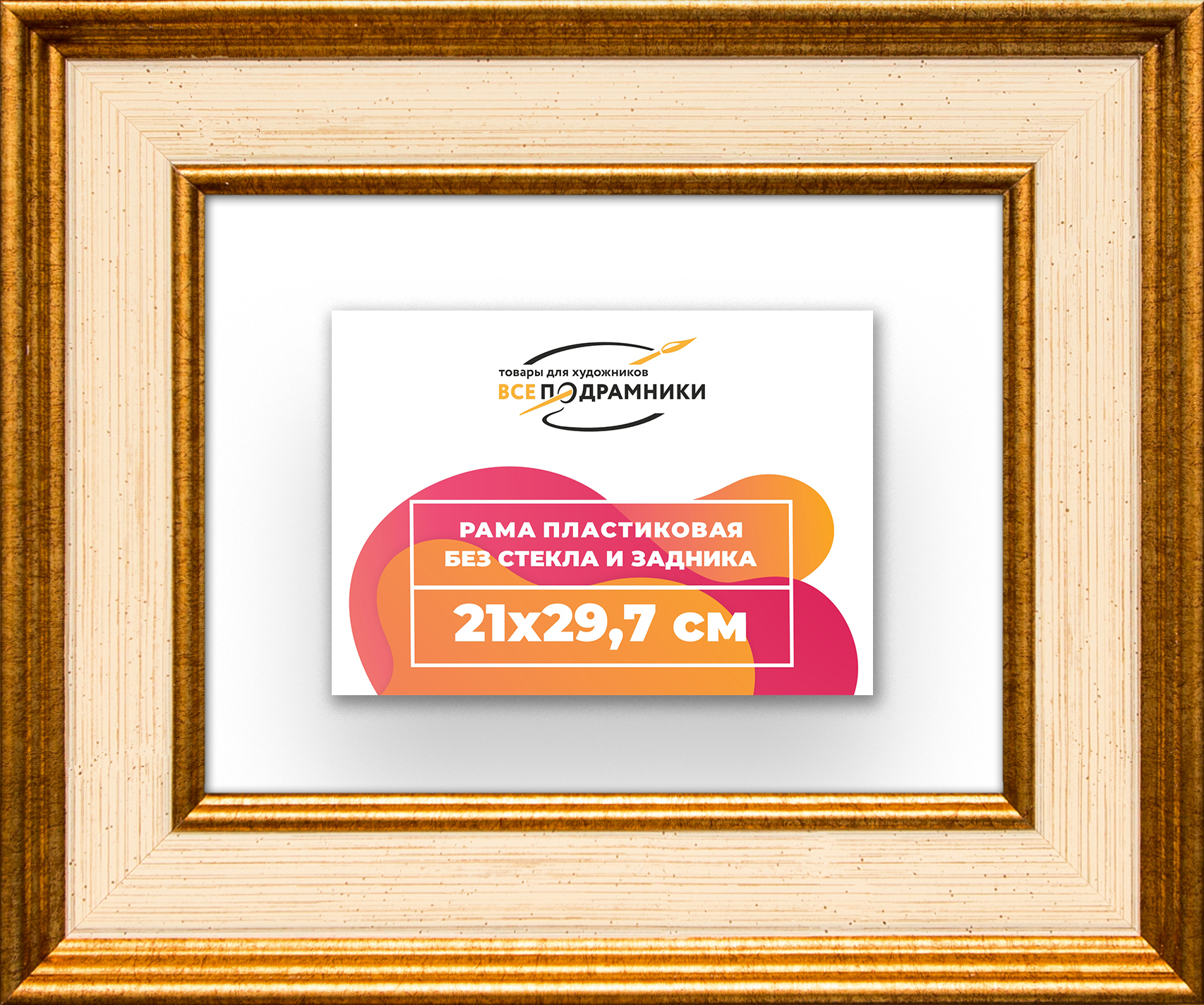 Пластиковая рама 21x29,7 без стекла и задника Пластиковая рама без стекла и задника изготовлена из безопасного и экологически чистого первичного полистирола высшей категории. Производитель: “ВсеПодрамники”. Для удобства установки к стандартному размеру добавлено 4 мм (по 2 мм с каждой стороны), чтобы ваше изделие легко поместилось в раму. 1. Основные характеристики: - Размеры рамки: 21x29,7 (по размеру помещаемого изображения) - Габариты изделия: 30.0x38.7 см. - Цвет: кремовый - Профиль: классический - Сечение рамы: 50x30 мм - Ширина четверти: 7 мм - Высота четверти: 10 мм 2. Комплектация: - Подвесная пластина – 2 шт. - Прижимы для подрамника - Винты 3. Назначение: - Подходит для оформления: • Картин, включая картины по номерам • Алмазных мозаик и вышивок крестом • Постеров, фотографий, икон • Паспарту, зеркал • Вышивки бисером и алмазной мозаики • Медалей, орденов, спортивных наград • Старинных часов, ключей, монет или украшений - Используется как настенная или настольная фоторамка (нет подставки) 4. Преимущества: - Универсальность: квадратные и прямоугольные форматы, размеры от 10х10 до 100х100 см - Удобство: можно повесить горизонтально или вертикально - Широкий выбор: разные профили, расцветки, с опцией со стеклом или без - Идеальный подарок: для мамы, папы, бабушки, дедушки, друзей, коллег на день рождения, Новый год, 8 марта, 23 февраля, свадьбу, новоселье или любой другой праздник 5. Применение в интерьере: - Идеально для алмазной вышивки, мозаики, картин на подрамнике - Украшение дома: подходит для изображений цветов, живописи, портретов, натюрмортов, городских пейзажей, природы 6. Производство: - Страна: Россия, Санкт-Петербург - Качество: высококачественные материалы с вниманием к деталям