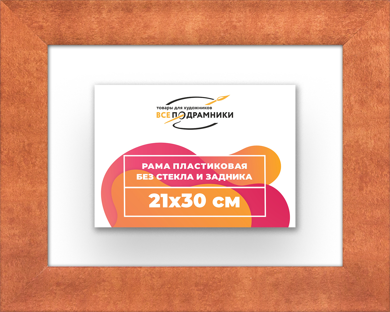 Пластиковая рама 21x30 без стекла и задника Пластиковая рама без стекла и задника изготовлена из безопасного и экологически чистого первичного полистирола высшей категории. Производитель: “ВсеПодрамники”. Для удобства установки к стандартному размеру добавлено 4 мм (по 2 мм с каждой стороны), чтобы ваше изделие легко поместилось в раму. 1. Основные характеристики: - Размеры рамки: 21x30 (по размеру помещаемого изображения) - Габариты изделия: 26.0x35.0 см. - Цвет: медь - Профиль: классический - Сечение рамы: 30x16 мм - Ширина четверти: 7 мм - Высота четверти: 10 мм 2. Комплектация: - Подвесная пластина – 2 шт. - Прижимы для подрамника - Винты 3. Назначение: - Подходит для оформления: • Картин, включая картины по номерам • Алмазных мозаик и вышивок крестом • Постеров, фотографий, икон • Паспарту, зеркал • Вышивки бисером и алмазной мозаики • Медалей, орденов, спортивных наград • Старинных часов, ключей, монет или украшений - Используется как настенная или настольная фоторамка (нет подставки) 4. Преимущества: - Универсальность: квадратные и прямоугольные форматы, размеры от 10х10 до 100х100 см - Удобство: можно повесить горизонтально или вертикально - Широкий выбор: разные профили, расцветки, с опцией со стеклом или без - Идеальный подарок: для мамы, папы, бабушки, дедушки, друзей, коллег на день рождения, Новый год, 8 марта, 23 февраля, свадьбу, новоселье или любой другой праздник 5. Применение в интерьере: - Идеально для алмазной вышивки, мозаики, картин на подрамнике - Украшение дома: подходит для изображений цветов, живописи, портретов, натюрмортов, городских пейзажей, природы 6. Производство: - Страна: Россия, Санкт-Петербург - Качество: высококачественные материалы с вниманием к деталям