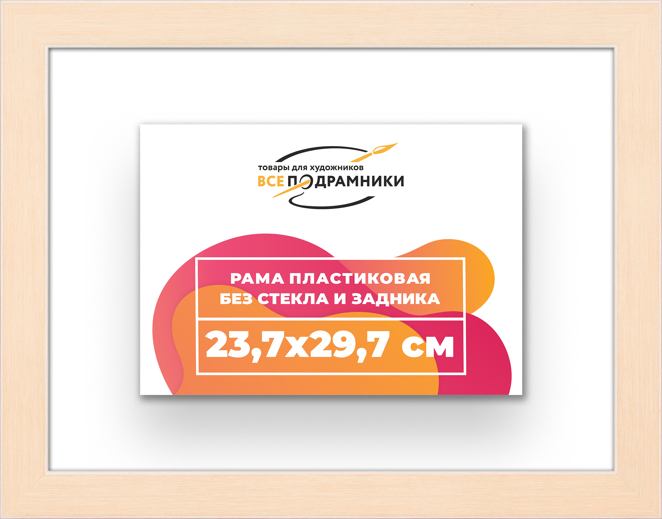 Пластиковая рама 23,7x29,7 без стекла и задника Пластиковая рама без стекла и задника изготовлена из безопасного и экологически чистого первичного полистирола высшей категории. Производитель: “ВсеПодрамники”. Для удобства установки к стандартному размеру добавлено 4 мм (по 2 мм с каждой стороны), чтобы ваше изделие легко поместилось в раму. 1. Основные характеристики: - Размеры рамки: 23,7x29,7 (по размеру помещаемого изображения) - Габариты изделия: 29.5x35.5 см. - Цвет: кремовый - Профиль: классический - Сечение рамы: 34x24 мм - Ширина четверти: 7 мм - Высота четверти: 10 мм 2. Комплектация: - Подвесная пластина – 2 шт. - Прижимы для подрамника - Винты 3. Назначение: - Подходит для оформления: • Картин, включая картины по номерам • Алмазных мозаик и вышивок крестом • Постеров, фотографий, икон • Паспарту, зеркал • Вышивки бисером и алмазной мозаики • Медалей, орденов, спортивных наград • Старинных часов, ключей, монет или украшений - Используется как настенная или настольная фоторамка (нет подставки) 4. Преимущества: - Универсальность: квадратные и прямоугольные форматы, размеры от 10х10 до 100х100 см - Удобство: можно повесить горизонтально или вертикально - Широкий выбор: разные профили, расцветки, с опцией со стеклом или без - Идеальный подарок: для мамы, папы, бабушки, дедушки, друзей, коллег на день рождения, Новый год, 8 марта, 23 февраля, свадьбу, новоселье или любой другой праздник 5. Применение в интерьере: - Идеально для алмазной вышивки, мозаики, картин на подрамнике - Украшение дома: подходит для изображений цветов, живописи, портретов, натюрмортов, городских пейзажей, природы 6. Производство: - Страна: Россия, Санкт-Петербург - Качество: высококачественные материалы с вниманием к деталям