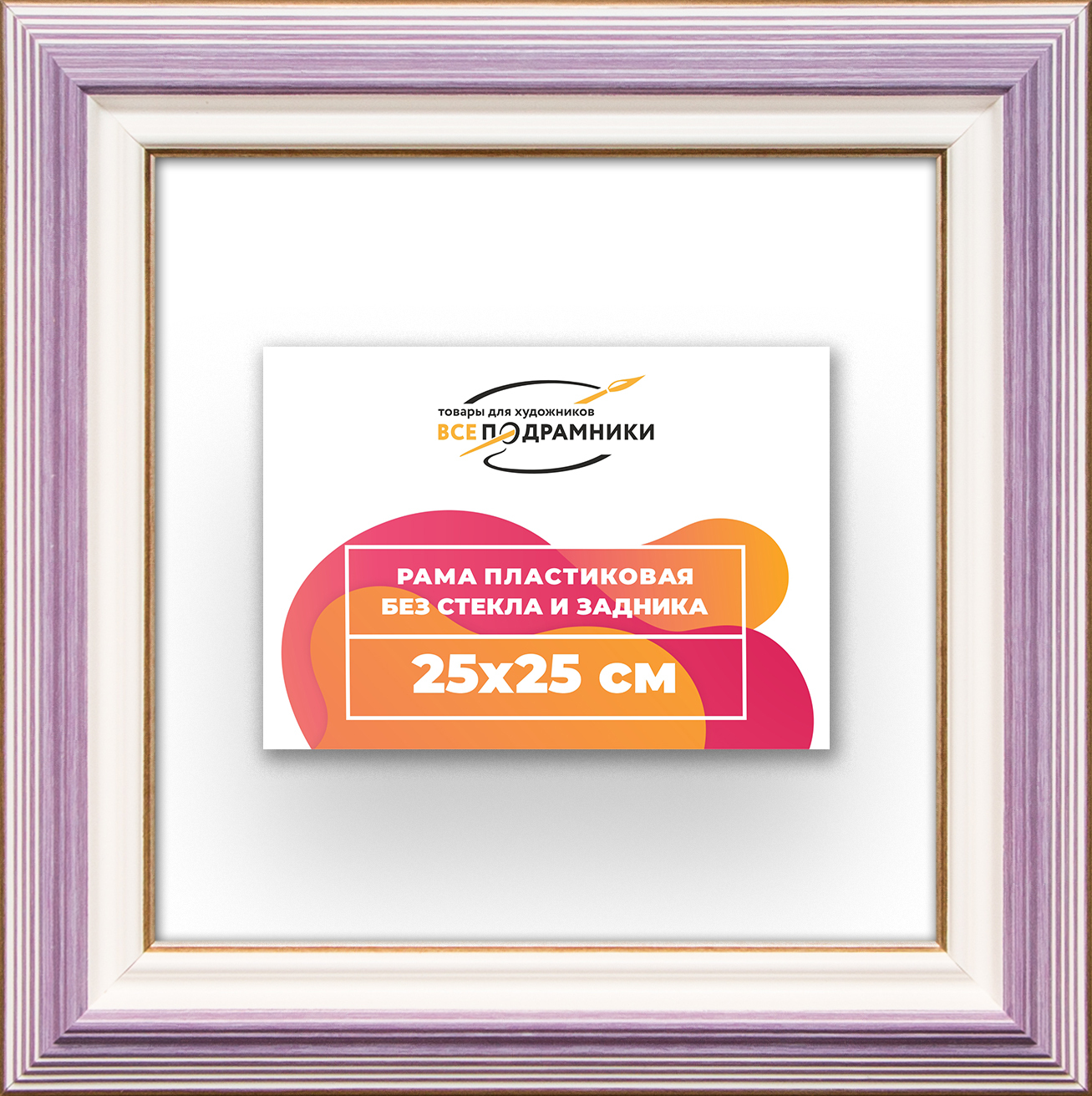 Пластиковая рама 25x25 без стекла и задника Пластиковая рама без стекла и задника изготовлена из безопасного и экологически чистого первичного полистирола высшей категории. Производитель: “ВсеПодрамники”. Для удобства установки к стандартному размеру добавлено 4 мм (по 2 мм с каждой стороны), чтобы ваше изделие легко поместилось в раму. 1. Основные характеристики: - Размеры рамки: 25x25 (по размеру помещаемого изображения) - Габариты изделия: 31.8x31.8 см. - Цвет: фиолетовый - Профиль: классический - Сечение рамы: 39x22 мм - Ширина четверти: 7 мм - Высота четверти: 10 мм 2. Комплектация: - Подвесная пластина – 2 шт. - Прижимы для подрамника - Винты 3. Назначение: - Подходит для оформления: • Картин, включая картины по номерам • Алмазных мозаик и вышивок крестом • Постеров, фотографий, икон • Паспарту, зеркал • Вышивки бисером и алмазной мозаики • Медалей, орденов, спортивных наград • Старинных часов, ключей, монет или украшений - Используется как настенная или настольная фоторамка (нет подставки) 4. Преимущества: - Универсальность: квадратные и прямоугольные форматы, размеры от 10х10 до 100х100 см - Удобство: можно повесить горизонтально или вертикально - Широкий выбор: разные профили, расцветки, с опцией со стеклом или без - Идеальный подарок: для мамы, папы, бабушки, дедушки, друзей, коллег на день рождения, Новый год, 8 марта, 23 февраля, свадьбу, новоселье или любой другой праздник 5. Применение в интерьере: - Идеально для алмазной вышивки, мозаики, картин на подрамнике - Украшение дома: подходит для изображений цветов, живописи, портретов, натюрмортов, городских пейзажей, природы 6. Производство: - Страна: Россия, Санкт-Петербург - Качество: высококачественные материалы с вниманием к деталям