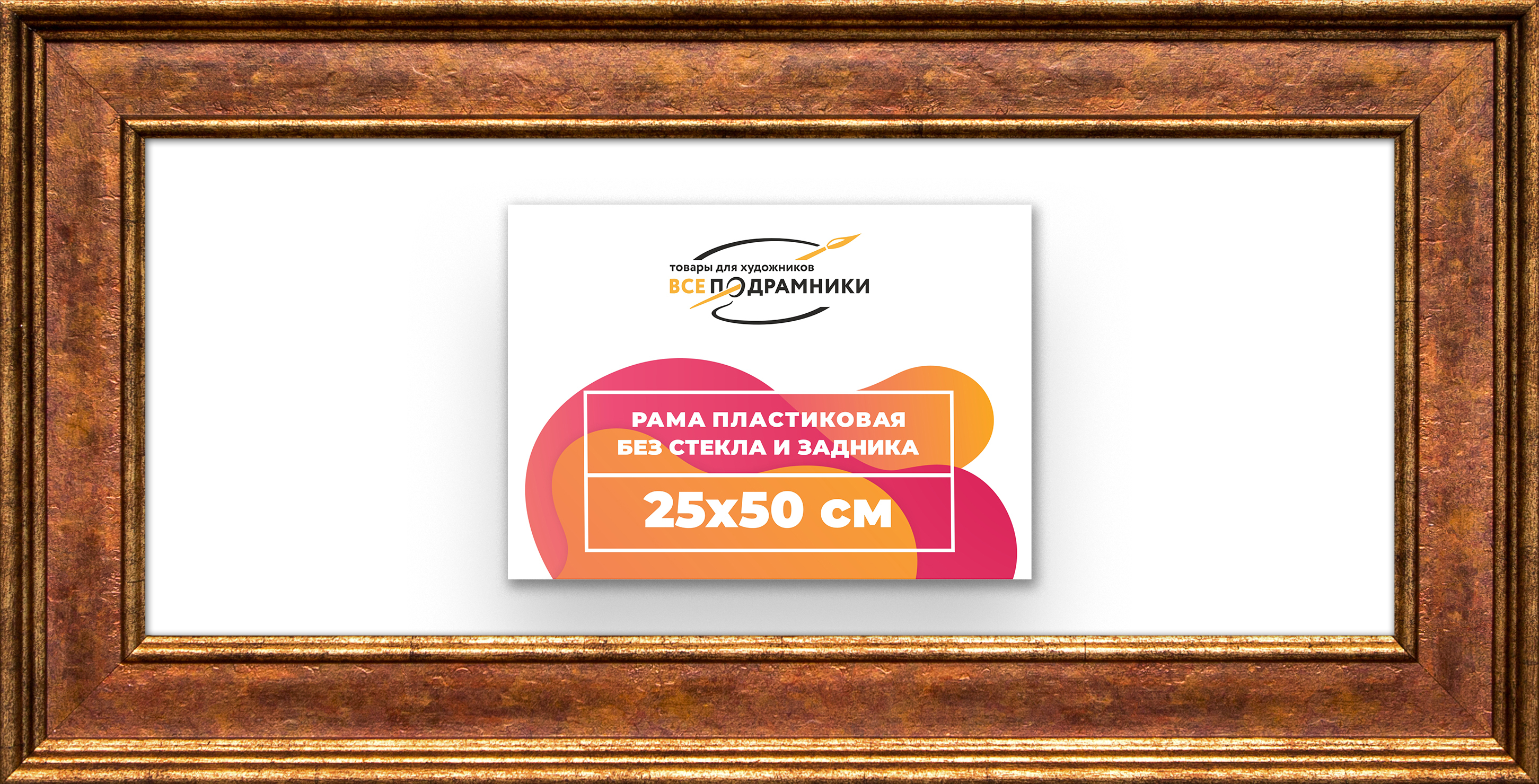 Пластиковая рама 25x50 без стекла и задника Пластиковая рама без стекла и задника изготовлена из безопасного и экологически чистого первичного полистирола высшей категории. Производитель: “ВсеПодрамники”. Для удобства установки к стандартному размеру добавлено 4 мм (по 2 мм с каждой стороны), чтобы ваше изделие легко поместилось в раму. 1. Основные характеристики: - Размеры рамки: 25x50 (по размеру помещаемого изображения) - Габариты изделия: 34.0x59.0 см. - Цвет: коричневый - Профиль: классический - Сечение рамы: 50x30 мм - Ширина четверти: 7 мм - Высота четверти: 10 мм 2. Комплектация: - Подвесная пластина – 2 шт. - Прижимы для подрамника - Винты 3. Назначение: - Подходит для оформления: • Картин, включая картины по номерам • Алмазных мозаик и вышивок крестом • Постеров, фотографий, икон • Паспарту, зеркал • Вышивки бисером и алмазной мозаики • Медалей, орденов, спортивных наград • Старинных часов, ключей, монет или украшений - Используется как настенная или настольная фоторамка (нет подставки) 4. Преимущества: - Универсальность: квадратные и прямоугольные форматы, размеры от 10х10 до 100х100 см - Удобство: можно повесить горизонтально или вертикально - Широкий выбор: разные профили, расцветки, с опцией со стеклом или без - Идеальный подарок: для мамы, папы, бабушки, дедушки, друзей, коллег на день рождения, Новый год, 8 марта, 23 февраля, свадьбу, новоселье или любой другой праздник 5. Применение в интерьере: - Идеально для алмазной вышивки, мозаики, картин на подрамнике - Украшение дома: подходит для изображений цветов, живописи, портретов, натюрмортов, городских пейзажей, природы 6. Производство: - Страна: Россия, Санкт-Петербург - Качество: высококачественные материалы с вниманием к деталям