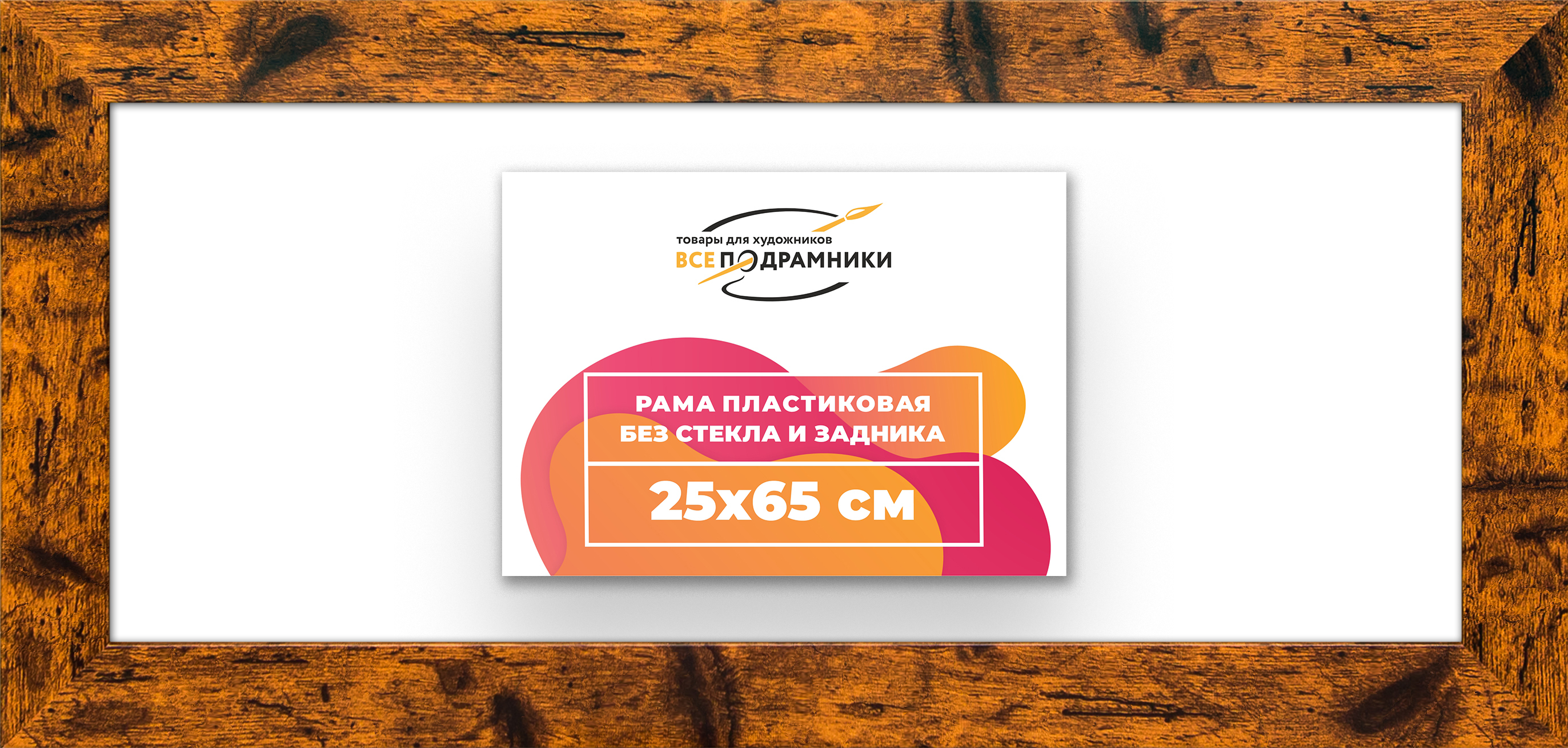 Пластиковая рама 25x65 без стекла и задника Пластиковая рама без стекла и задника изготовлена из безопасного и экологически чистого первичного полистирола высшей категории. Производитель: “ВсеПодрамники”. Для удобства установки к стандартному размеру добавлено 4 мм (по 2 мм с каждой стороны), чтобы ваше изделие легко поместилось в раму. 1. Основные характеристики: - Размеры рамки: 25x65 (по размеру помещаемого изображения) - Габариты изделия: 30.0x70.0 см. - Цвет: коричневый - Профиль: классический - Сечение рамы: 30x16 мм - Ширина четверти: 7 мм - Высота четверти: 10 мм 2. Комплектация: - Подвесная пластина – 2 шт. - Прижимы для подрамника - Винты 3. Назначение: - Подходит для оформления: • Картин, включая картины по номерам • Алмазных мозаик и вышивок крестом • Постеров, фотографий, икон • Паспарту, зеркал • Вышивки бисером и алмазной мозаики • Медалей, орденов, спортивных наград • Старинных часов, ключей, монет или украшений - Используется как настенная или настольная фоторамка (нет подставки) 4. Преимущества: - Универсальность: квадратные и прямоугольные форматы, размеры от 10х10 до 100х100 см - Удобство: можно повесить горизонтально или вертикально - Широкий выбор: разные профили, расцветки, с опцией со стеклом или без - Идеальный подарок: для мамы, папы, бабушки, дедушки, друзей, коллег на день рождения, Новый год, 8 марта, 23 февраля, свадьбу, новоселье или любой другой праздник 5. Применение в интерьере: - Идеально для алмазной вышивки, мозаики, картин на подрамнике - Украшение дома: подходит для изображений цветов, живописи, портретов, натюрмортов, городских пейзажей, природы 6. Производство: - Страна: Россия, Санкт-Петербург - Качество: высококачественные материалы с вниманием к деталям