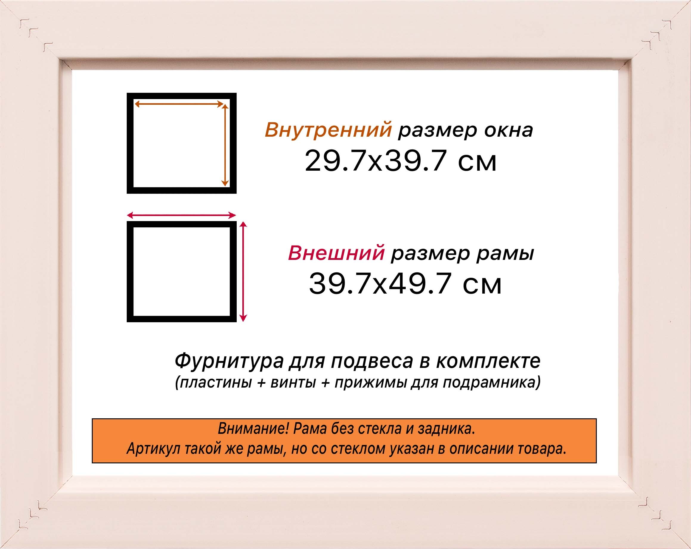 Пластиковая рама 29,7x39,7 без стекла и задника Пластиковая рама без стекла и задника изготовлена из безопасного и экологически чистого первичного полистирола высшей категории. Производитель: “ВсеПодрамники”. Для удобства установки к стандартному размеру добавлено 4 мм (по 2 мм с каждой стороны), чтобы ваше изделие легко поместилось в раму. 1. Основные характеристики: - Размеры рамки: 29,7x39,7 (по размеру помещаемого изображения) - Габариты изделия: 39.7x49.7 см. - Цвет: серебристый - Профиль: классический - Сечение рамы: 55x35 мм - Ширина четверти: 7 мм - Высота четверти: 10 мм 2. Комплектация: - Подвесная пластина – 2 шт. - Прижимы для подрамника - Винты 3. Назначение: - Подходит для оформления: • Картин, включая картины по номерам • Алмазных мозаик и вышивок крестом • Постеров, фотографий, икон • Паспарту, зеркал • Вышивки бисером и алмазной мозаики • Медалей, орденов, спортивных наград • Старинных часов, ключей, монет или украшений - Используется как настенная или настольная фоторамка (нет подставки) 4. Преимущества: - Универсальность: квадратные и прямоугольные форматы, размеры от 10х10 до 100х100 см - Удобство: можно повесить горизонтально или вертикально - Широкий выбор: разные профили, расцветки, с опцией со стеклом или без - Идеальный подарок: для мамы, папы, бабушки, дедушки, друзей, коллег на день рождения, Новый год, 8 марта, 23 февраля, свадьбу, новоселье или любой другой праздник 5. Применение в интерьере: - Идеально для алмазной вышивки, мозаики, картин на подрамнике - Украшение дома: подходит для изображений цветов, живописи, портретов, натюрмортов, городских пейзажей, природы 6. Производство: - Страна: Россия, Санкт-Петербург - Качество: высококачественные материалы с вниманием к деталям