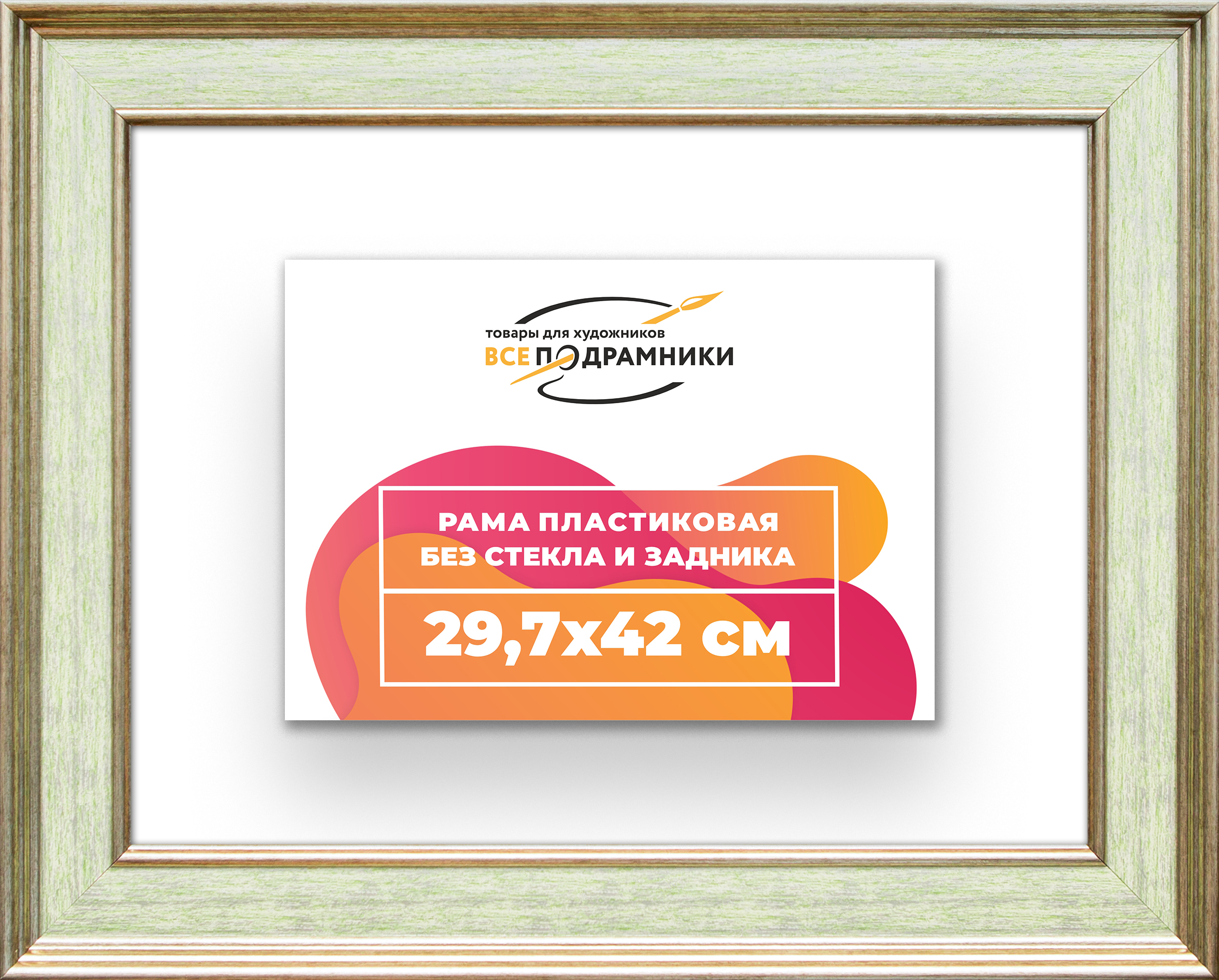 Пластиковая рама 29,7x42 без стекла и задника Пластиковая рама без стекла и задника изготовлена из безопасного и экологически чистого первичного полистирола высшей категории. Производитель: “ВсеПодрамники”. Для удобства установки к стандартному размеру добавлено 4 мм (по 2 мм с каждой стороны), чтобы ваше изделие легко поместилось в раму. 1. Основные характеристики: - Размеры рамки: 29,7x42 (по размеру помещаемого изображения) - Габариты изделия: 38.7x51.0 см. - Цвет: зеленый - Профиль: классический - Сечение рамы: 50x30 мм - Ширина четверти: 7 мм - Высота четверти: 10 мм 2. Комплектация: - Подвесная пластина – 2 шт. - Прижимы для подрамника - Винты 3. Назначение: - Подходит для оформления: • Картин, включая картины по номерам • Алмазных мозаик и вышивок крестом • Постеров, фотографий, икон • Паспарту, зеркал • Вышивки бисером и алмазной мозаики • Медалей, орденов, спортивных наград • Старинных часов, ключей, монет или украшений - Используется как настенная или настольная фоторамка (нет подставки) 4. Преимущества: - Универсальность: квадратные и прямоугольные форматы, размеры от 10х10 до 100х100 см - Удобство: можно повесить горизонтально или вертикально - Широкий выбор: разные профили, расцветки, с опцией со стеклом или без - Идеальный подарок: для мамы, папы, бабушки, дедушки, друзей, коллег на день рождения, Новый год, 8 марта, 23 февраля, свадьбу, новоселье или любой другой праздник 5. Применение в интерьере: - Идеально для алмазной вышивки, мозаики, картин на подрамнике - Украшение дома: подходит для изображений цветов, живописи, портретов, натюрмортов, городских пейзажей, природы 6. Производство: - Страна: Россия, Санкт-Петербург - Качество: высококачественные материалы с вниманием к деталям