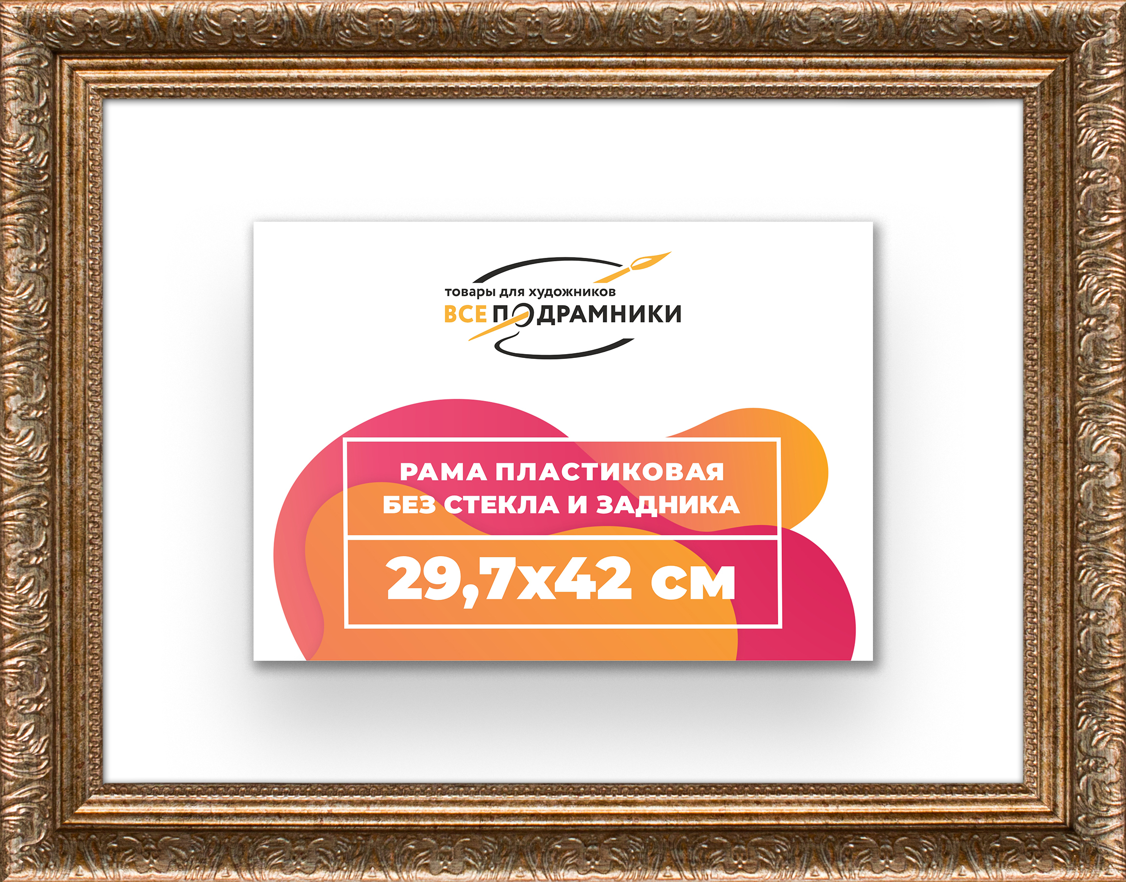 Пластиковая рама 29,7x42 без стекла и задника Пластиковая рама без стекла и задника изготовлена из безопасного и экологически чистого первичного полистирола высшей категории. Производитель: “ВсеПодрамники”. Для удобства установки к стандартному размеру добавлено 4 мм (по 2 мм с каждой стороны), чтобы ваше изделие легко поместилось в раму. 1. Основные характеристики: - Размеры рамки: 29,7x42 (по размеру помещаемого изображения) - Габариты изделия: 39.7x52.0 см. - Цвет: серебро - Профиль: классический - Сечение рамы: 55x36 мм - Ширина четверти: 7 мм - Высота четверти: 10 мм 2. Комплектация: - Подвесная пластина – 2 шт. - Прижимы для подрамника - Винты 3. Назначение: - Подходит для оформления: • Картин, включая картины по номерам • Алмазных мозаик и вышивок крестом • Постеров, фотографий, икон • Паспарту, зеркал • Вышивки бисером и алмазной мозаики • Медалей, орденов, спортивных наград • Старинных часов, ключей, монет или украшений - Используется как настенная или настольная фоторамка (нет подставки) 4. Преимущества: - Универсальность: квадратные и прямоугольные форматы, размеры от 10х10 до 100х100 см - Удобство: можно повесить горизонтально или вертикально - Широкий выбор: разные профили, расцветки, с опцией со стеклом или без - Идеальный подарок: для мамы, папы, бабушки, дедушки, друзей, коллег на день рождения, Новый год, 8 марта, 23 февраля, свадьбу, новоселье или любой другой праздник 5. Применение в интерьере: - Идеально для алмазной вышивки, мозаики, картин на подрамнике - Украшение дома: подходит для изображений цветов, живописи, портретов, натюрмортов, городских пейзажей, природы 6. Производство: - Страна: Россия, Санкт-Петербург - Качество: высококачественные материалы с вниманием к деталям