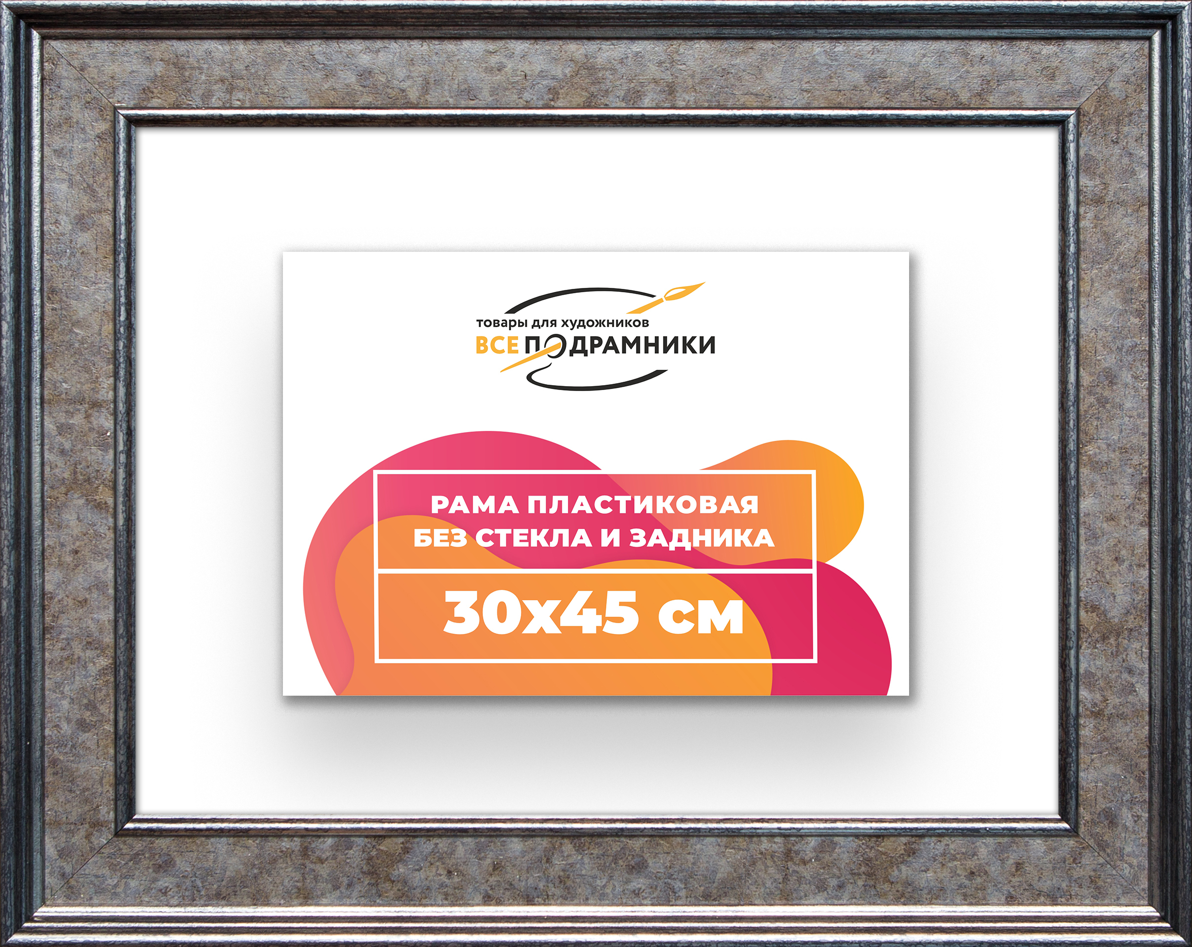 Пластиковая рама 30x45 без стекла и задника Пластиковая рама без стекла и задника изготовлена из безопасного и экологически чистого первичного полистирола высшей категории. Производитель: “ВсеПодрамники”. Для удобства установки к стандартному размеру добавлено 4 мм (по 2 мм с каждой стороны), чтобы ваше изделие легко поместилось в раму. 1. Основные характеристики: - Размеры рамки: 30x45 (по размеру помещаемого изображения) - Габариты изделия: 39.0x54.0 см. - Цвет: серебро - Профиль: классический - Сечение рамы: 50x30 мм - Ширина четверти: 7 мм - Высота четверти: 10 мм 2. Комплектация: - Подвесная пластина – 2 шт. - Прижимы для подрамника - Винты 3. Назначение: - Подходит для оформления: • Картин, включая картины по номерам • Алмазных мозаик и вышивок крестом • Постеров, фотографий, икон • Паспарту, зеркал • Вышивки бисером и алмазной мозаики • Медалей, орденов, спортивных наград • Старинных часов, ключей, монет или украшений - Используется как настенная или настольная фоторамка (нет подставки) 4. Преимущества: - Универсальность: квадратные и прямоугольные форматы, размеры от 10х10 до 100х100 см - Удобство: можно повесить горизонтально или вертикально - Широкий выбор: разные профили, расцветки, с опцией со стеклом или без - Идеальный подарок: для мамы, папы, бабушки, дедушки, друзей, коллег на день рождения, Новый год, 8 марта, 23 февраля, свадьбу, новоселье или любой другой праздник 5. Применение в интерьере: - Идеально для алмазной вышивки, мозаики, картин на подрамнике - Украшение дома: подходит для изображений цветов, живописи, портретов, натюрмортов, городских пейзажей, природы 6. Производство: - Страна: Россия, Санкт-Петербург - Качество: высококачественные материалы с вниманием к деталям