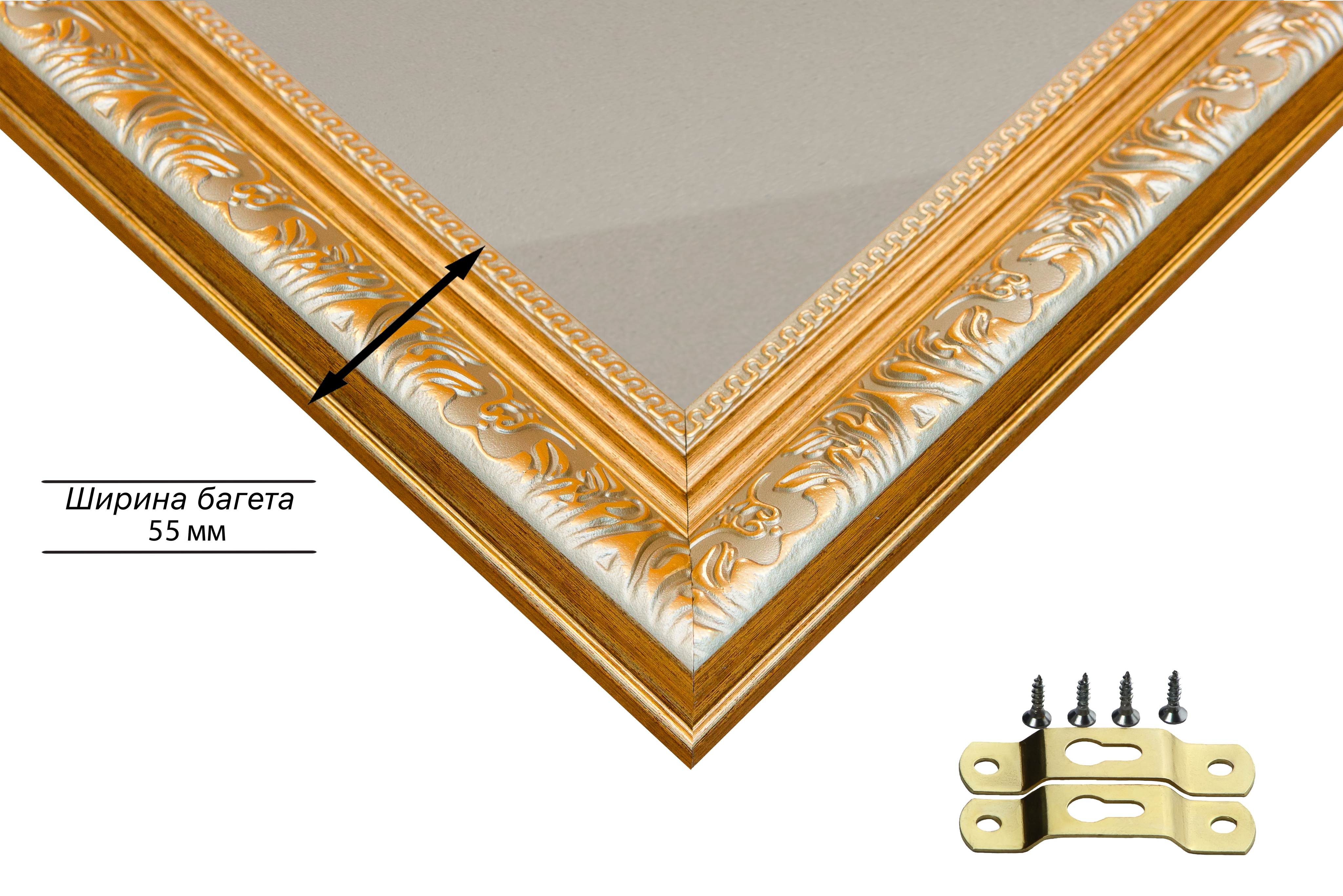 Пластиковая рама 30x50 без стекла и задника Пластиковая рама без стекла и задника изготовлена из безопасного и экологически чистого первичного полистирола высшей категории. Производитель: “ВсеПодрамники”. Для удобства установки к стандартному размеру добавлено 4 мм (по 2 мм с каждой стороны), чтобы ваше изделие легко поместилось в раму. 1. Основные характеристики: - Размеры рамки: 30x50 (по размеру помещаемого изображения) - Габариты изделия: 40.0x60.0 см. - Цвет: серебро - Профиль: классический - Сечение рамы: 55x36 мм - Ширина четверти: 7 мм - Высота четверти: 10 мм 2. Комплектация: - Подвесная пластина – 2 шт. - Прижимы для подрамника - Винты 3. Назначение: - Подходит для оформления: • Картин, включая картины по номерам • Алмазных мозаик и вышивок крестом • Постеров, фотографий, икон • Паспарту, зеркал • Вышивки бисером и алмазной мозаики • Медалей, орденов, спортивных наград • Старинных часов, ключей, монет или украшений - Используется как настенная или настольная фоторамка (нет подставки) 4. Преимущества: - Универсальность: квадратные и прямоугольные форматы, размеры от 10х10 до 100х100 см - Удобство: можно повесить горизонтально или вертикально - Широкий выбор: разные профили, расцветки, с опцией со стеклом или без - Идеальный подарок: для мамы, папы, бабушки, дедушки, друзей, коллег на день рождения, Новый год, 8 марта, 23 февраля, свадьбу, новоселье или любой другой праздник 5. Применение в интерьере: - Идеально для алмазной вышивки, мозаики, картин на подрамнике - Украшение дома: подходит для изображений цветов, живописи, портретов, натюрмортов, городских пейзажей, природы 6. Производство: - Страна: Россия, Санкт-Петербург - Качество: высококачественные материалы с вниманием к деталям