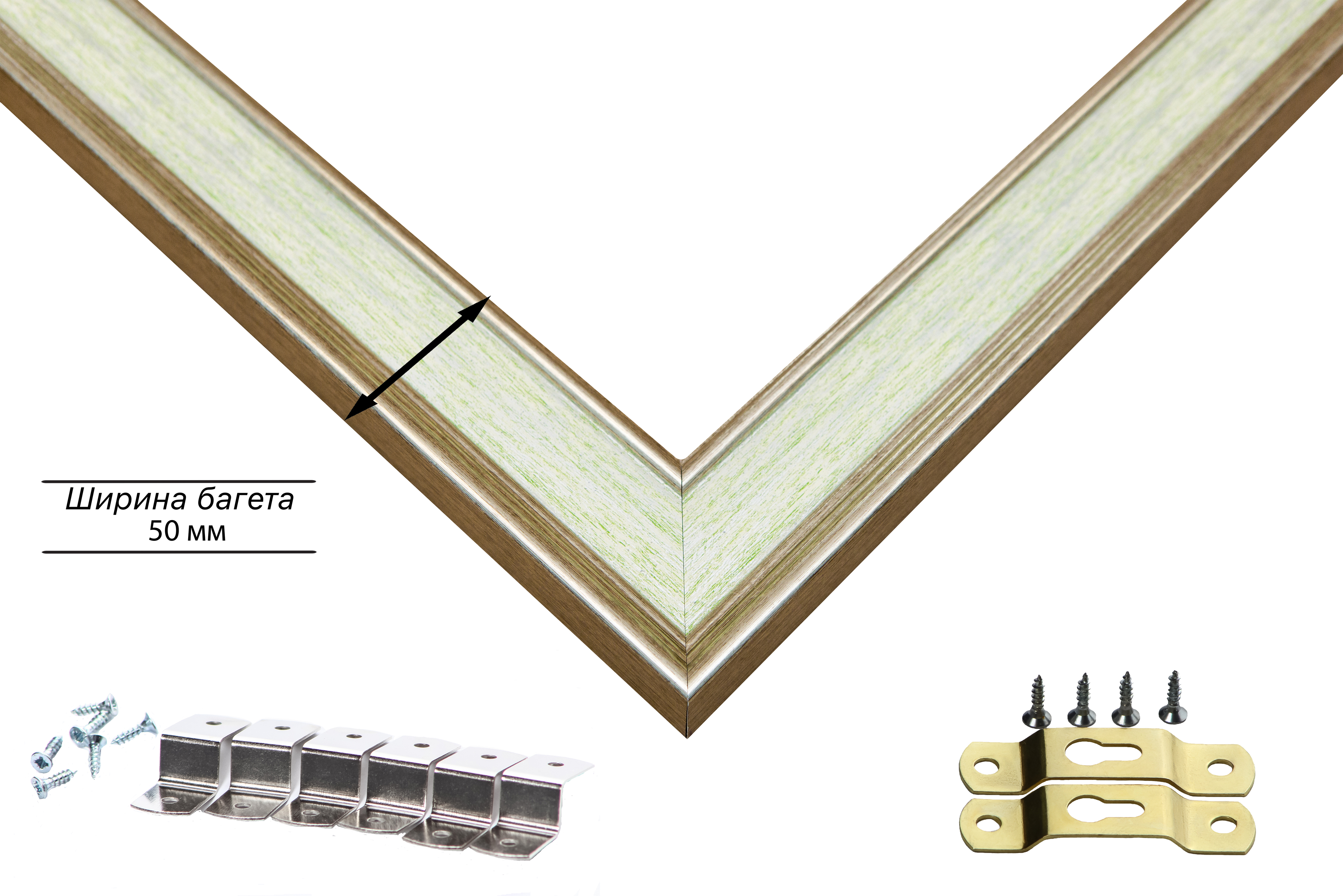 Пластиковая рама 30x55 без стекла и задника Пластиковая рама без стекла и задника изготовлена из безопасного и экологически чистого первичного полистирола высшей категории. Производитель: “ВсеПодрамники”. Для удобства установки к стандартному размеру добавлено 4 мм (по 2 мм с каждой стороны), чтобы ваше изделие легко поместилось в раму. 1. Основные характеристики: - Размеры рамки: 30x55 (по размеру помещаемого изображения) - Габариты изделия: 39.0x64.0 см. - Цвет: зеленый - Профиль: классический - Сечение рамы: 50x30 мм - Ширина четверти: 7 мм - Высота четверти: 10 мм 2. Комплектация: - Подвесная пластина – 2 шт. - Прижимы для подрамника - Винты 3. Назначение: - Подходит для оформления: • Картин, включая картины по номерам • Алмазных мозаик и вышивок крестом • Постеров, фотографий, икон • Паспарту, зеркал • Вышивки бисером и алмазной мозаики • Медалей, орденов, спортивных наград • Старинных часов, ключей, монет или украшений - Используется как настенная или настольная фоторамка (нет подставки) 4. Преимущества: - Универсальность: квадратные и прямоугольные форматы, размеры от 10х10 до 100х100 см - Удобство: можно повесить горизонтально или вертикально - Широкий выбор: разные профили, расцветки, с опцией со стеклом или без - Идеальный подарок: для мамы, папы, бабушки, дедушки, друзей, коллег на день рождения, Новый год, 8 марта, 23 февраля, свадьбу, новоселье или любой другой праздник 5. Применение в интерьере: - Идеально для алмазной вышивки, мозаики, картин на подрамнике - Украшение дома: подходит для изображений цветов, живописи, портретов, натюрмортов, городских пейзажей, природы 6. Производство: - Страна: Россия, Санкт-Петербург - Качество: высококачественные материалы с вниманием к деталям