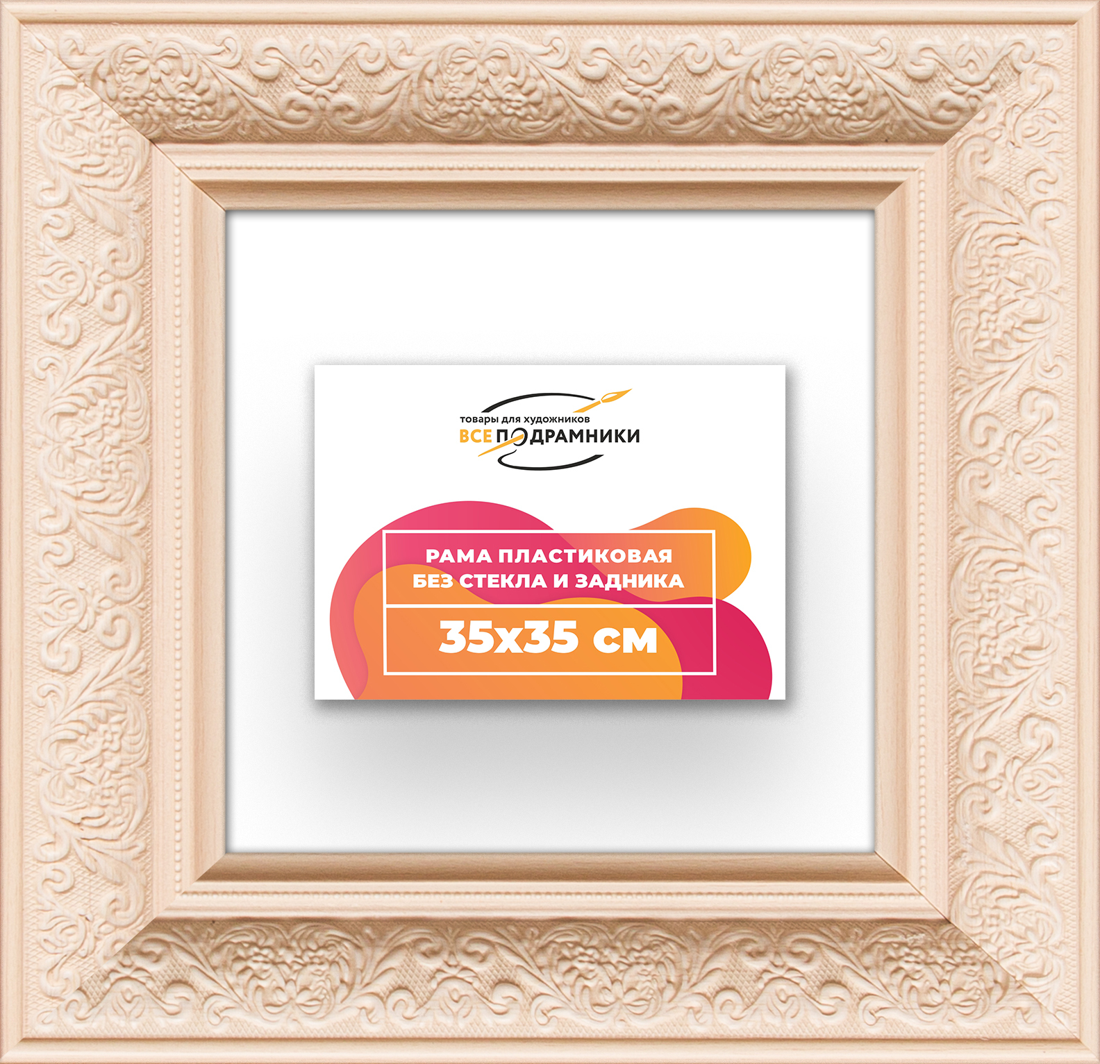 Пластиковая рама 35x35 без стекла и задника Пластиковая рама без стекла и задника изготовлена из безопасного и экологически чистого первичного полистирола высшей категории. Производитель: “ВсеПодрамники”. Для удобства установки к стандартному размеру добавлено 4 мм (по 2 мм с каждой стороны), чтобы ваше изделие легко поместилось в раму. 1. Основные характеристики: - Размеры рамки: 35x35 (по размеру помещаемого изображения) - Габариты изделия: 45.0x45.0 см. - Цвет: кремовый - Профиль: классический - Сечение рамы: 55x36 мм - Ширина четверти: 7 мм - Высота четверти: 10 мм 2. Комплектация: - Подвесная пластина – 2 шт. - Прижимы для подрамника - Винты 3. Назначение: - Подходит для оформления: • Картин, включая картины по номерам • Алмазных мозаик и вышивок крестом • Постеров, фотографий, икон • Паспарту, зеркал • Вышивки бисером и алмазной мозаики • Медалей, орденов, спортивных наград • Старинных часов, ключей, монет или украшений - Используется как настенная или настольная фоторамка (нет подставки) 4. Преимущества: - Универсальность: квадратные и прямоугольные форматы, размеры от 10х10 до 100х100 см - Удобство: можно повесить горизонтально или вертикально - Широкий выбор: разные профили, расцветки, с опцией со стеклом или без - Идеальный подарок: для мамы, папы, бабушки, дедушки, друзей, коллег на день рождения, Новый год, 8 марта, 23 февраля, свадьбу, новоселье или любой другой праздник 5. Применение в интерьере: - Идеально для алмазной вышивки, мозаики, картин на подрамнике - Украшение дома: подходит для изображений цветов, живописи, портретов, натюрмортов, городских пейзажей, природы 6. Производство: - Страна: Россия, Санкт-Петербург - Качество: высококачественные материалы с вниманием к деталям